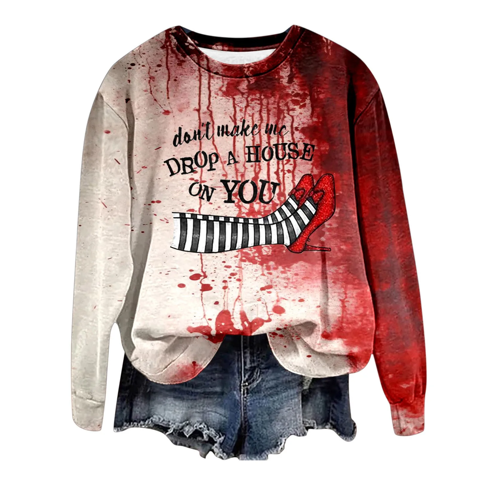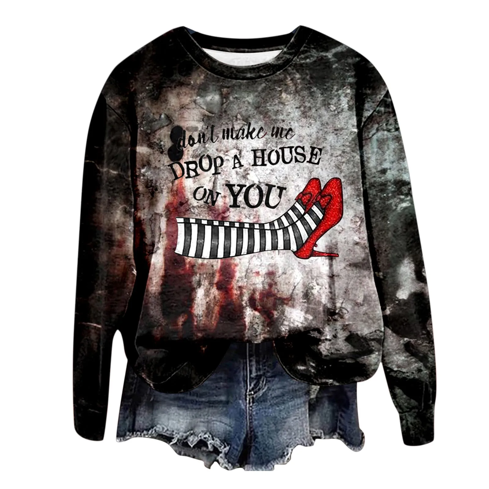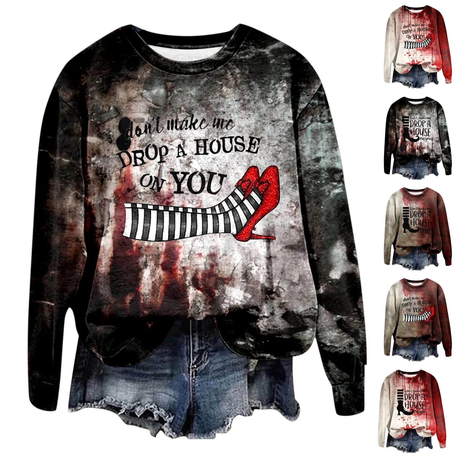 Halloween Womens Daily Home Outdoor Workout Long Sleeve O Neck T Shirt Top Printed Gothic Sweatshirt Street Blouse Streetwear