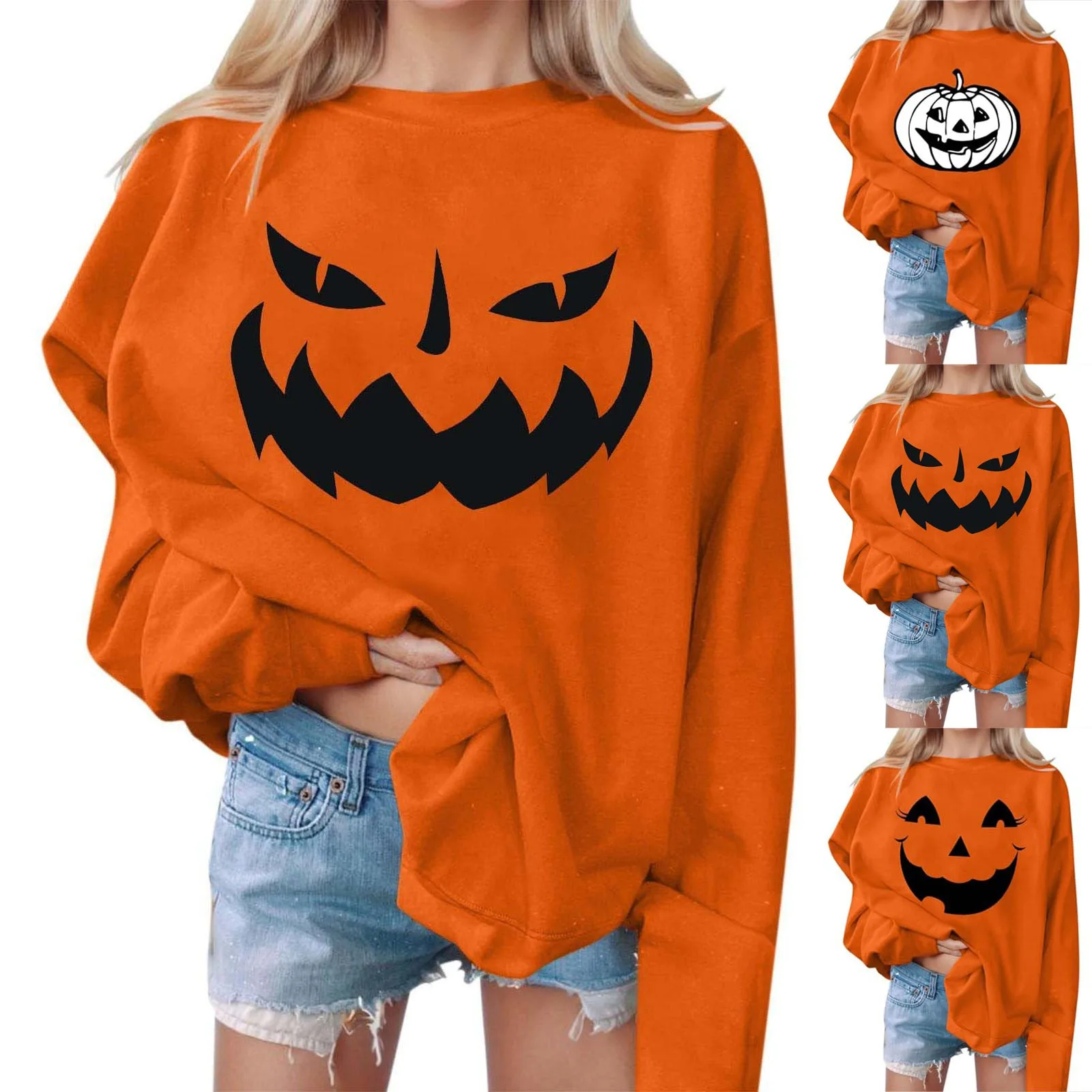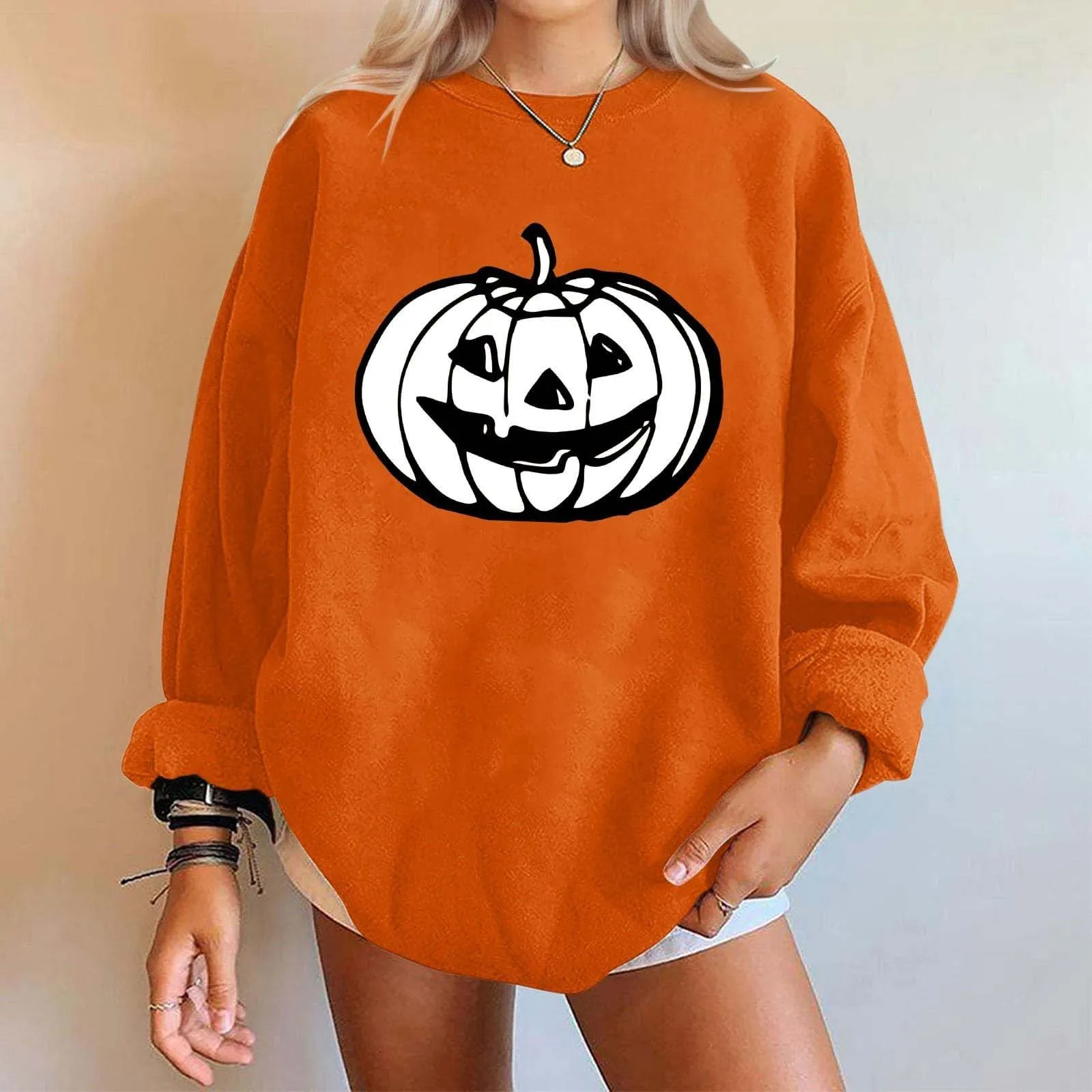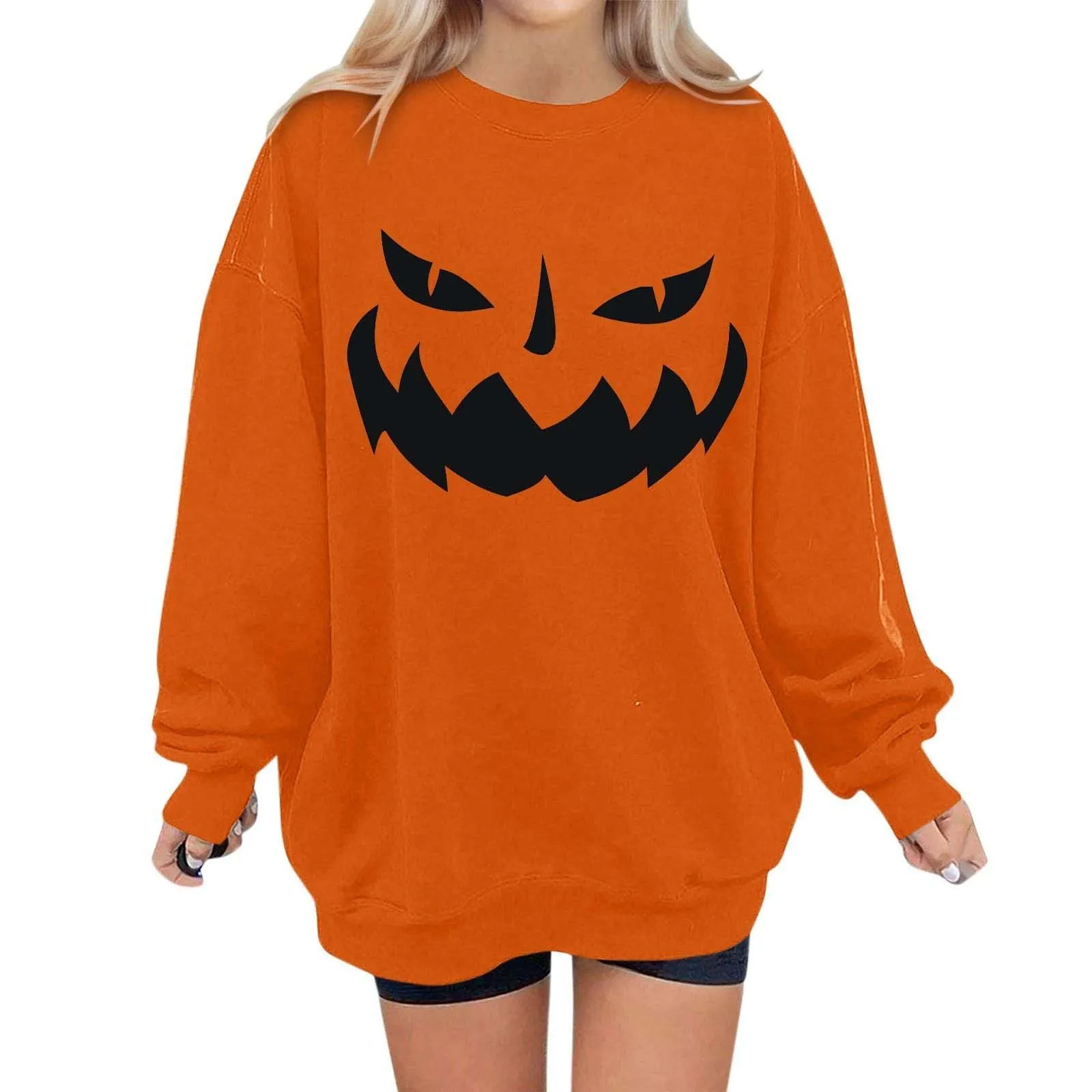 Women Funny Pumpkin Long Sleeve Hoodie Casual Pullover Tops Crewneck Halloween lantern sleeves Hoodies Casual Knit Y2K Clothes