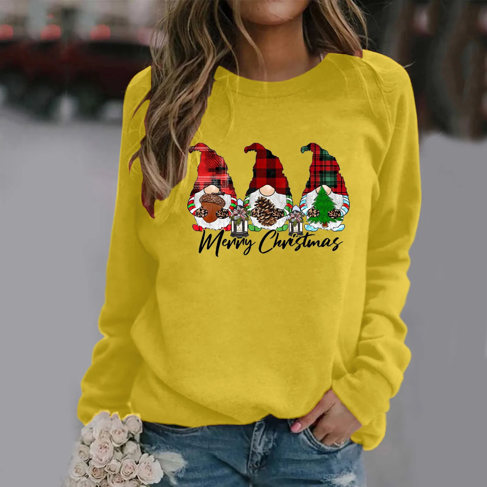 Christmas Sweatshirt Women Long Sleeve Print Pullover Tops Christmas Party Crewneck Sweatshirts Ladies Casual Festival Clothing