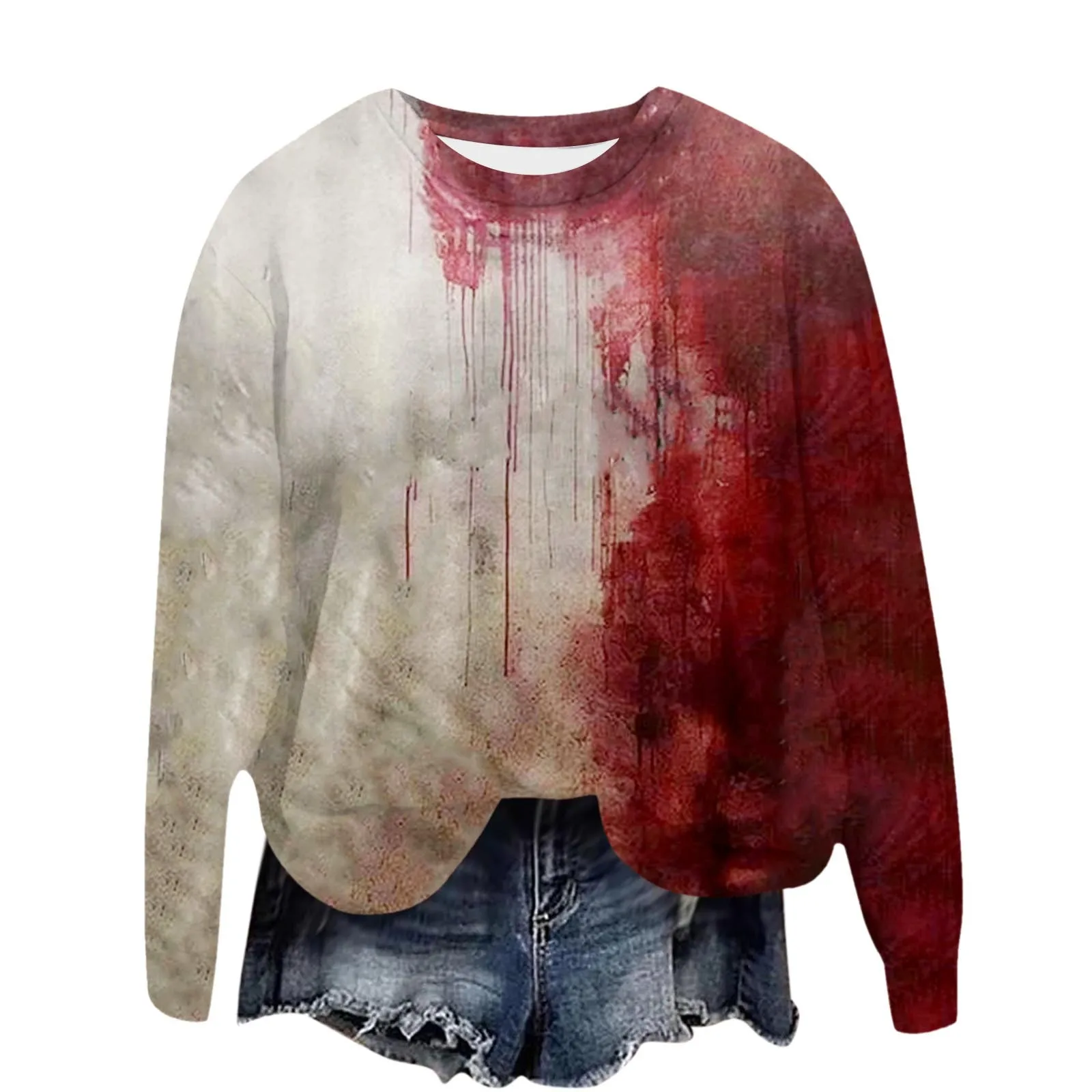 Women's Halloween Autumn/Winter Trendy Round Neck Sweater Bloody Letter Printed Hooded Sweatshirt Long Ladies Sweat Street Top