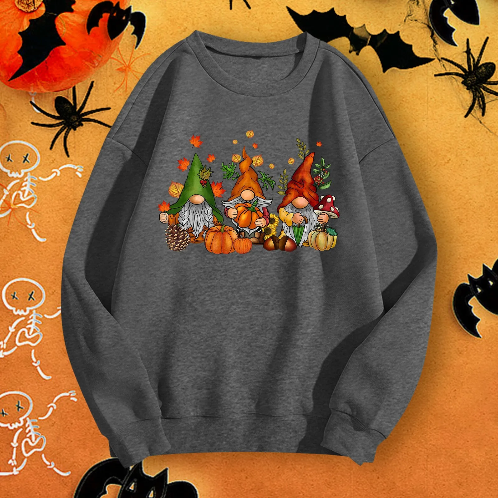 Women's Halloween Winter Simple Witch Holding Pumpkin Printed Crew Neck Long Sleeved Solid Color Hoodie Pullover Hoodie Top