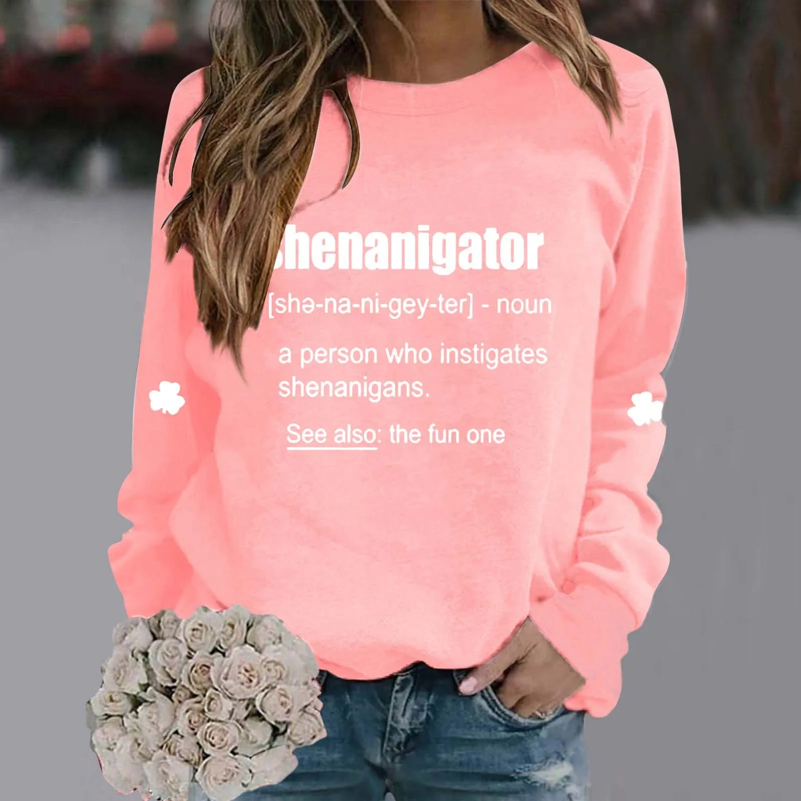 Women's Fashionable Round Neck Casual Floral Print Long Sleeve Drawstring Waist Sweatshirt Women Cute Top Ladies Athletic Vest