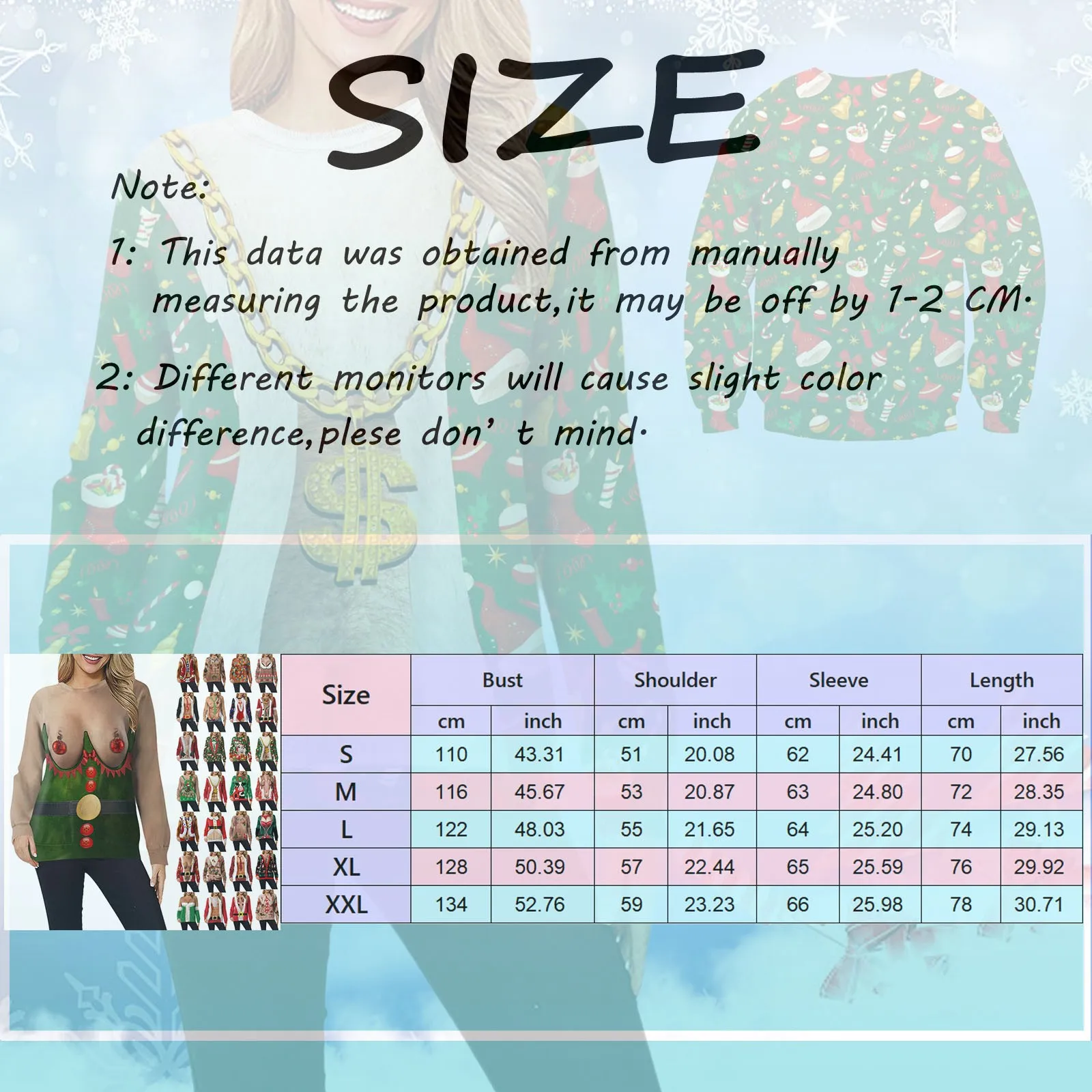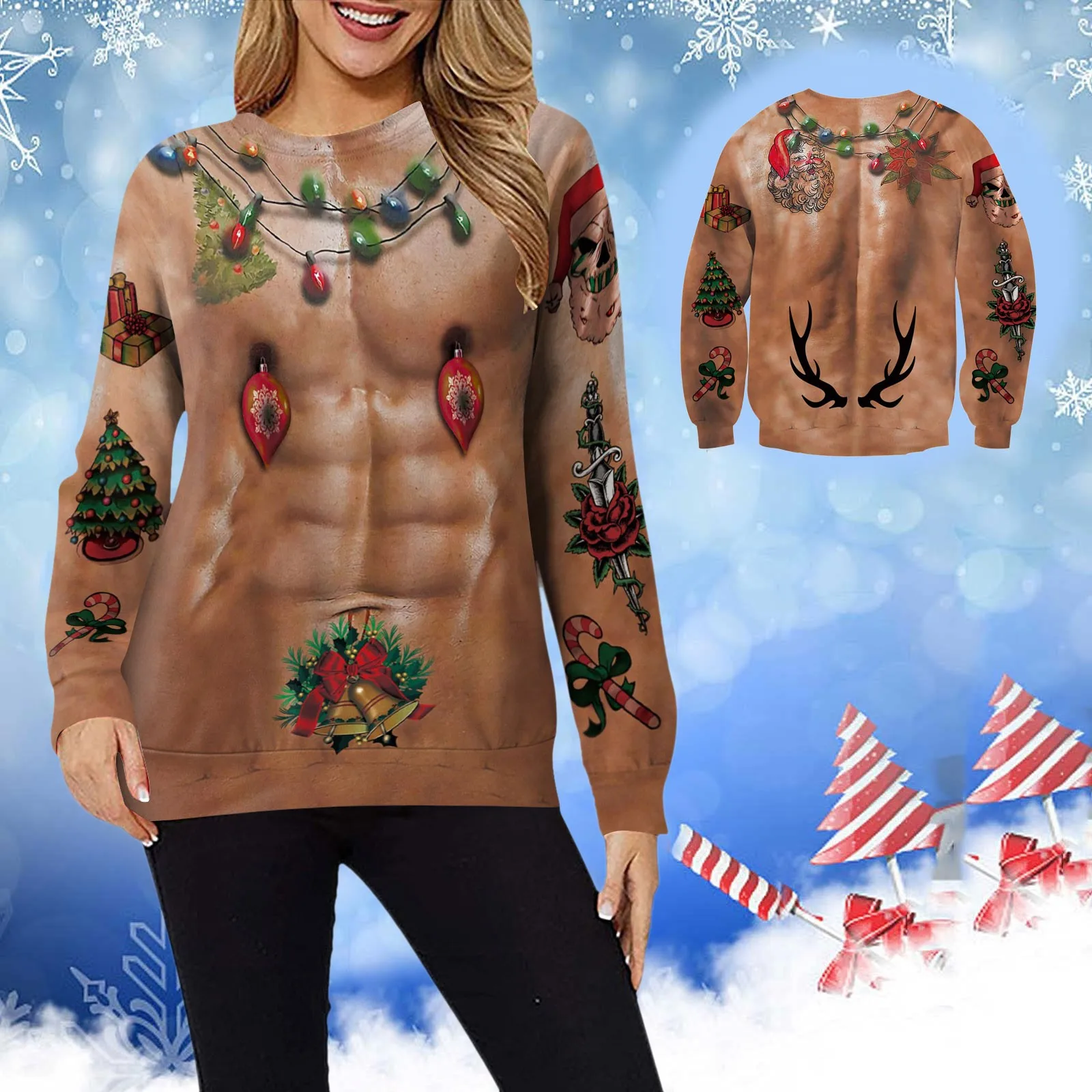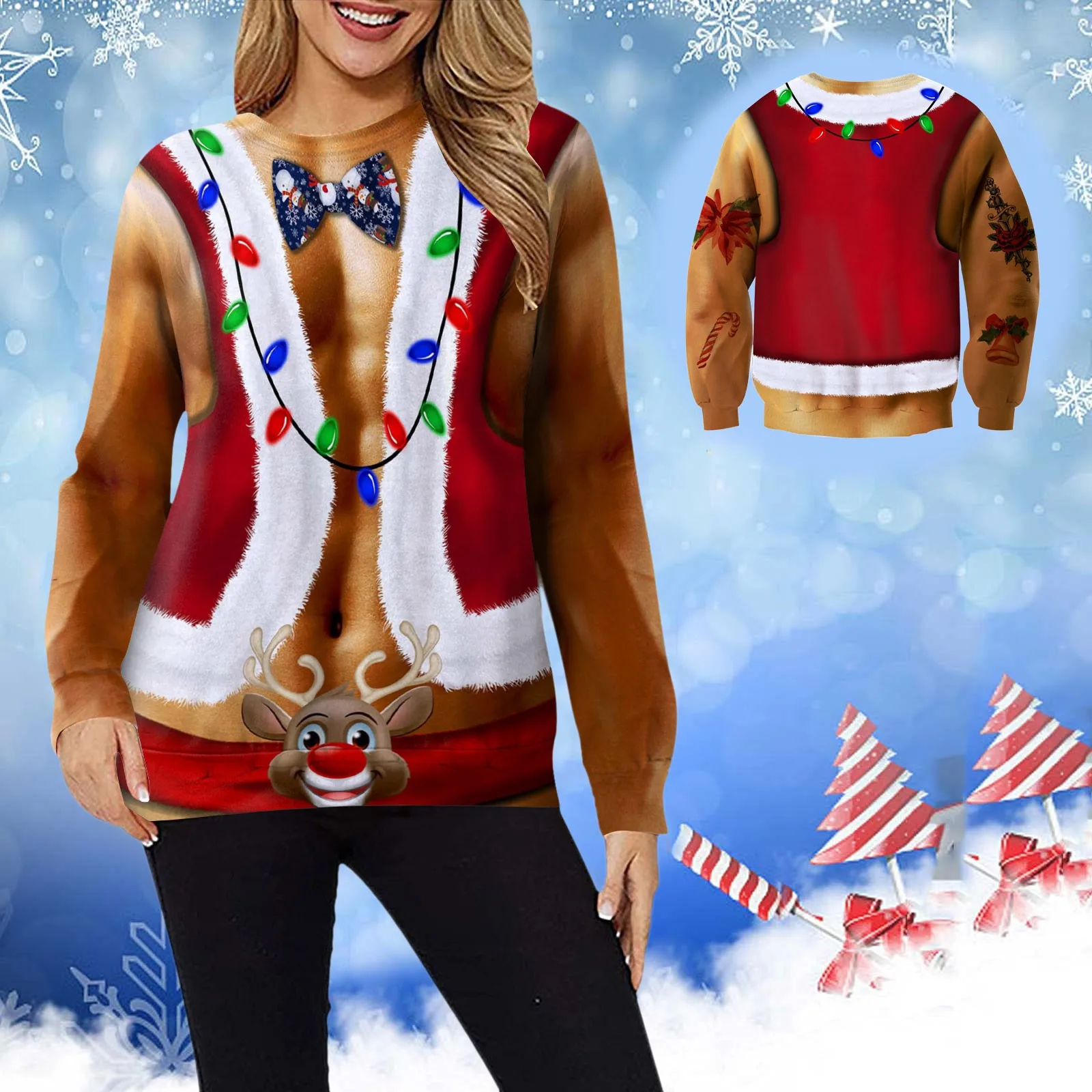 Fashion Funny Christmas Hoodie Crewneck Sweatshirt Novelty 3D Print Long Sleeve Sweater Shirt Autumn Winter Tops Ugly Pullover
