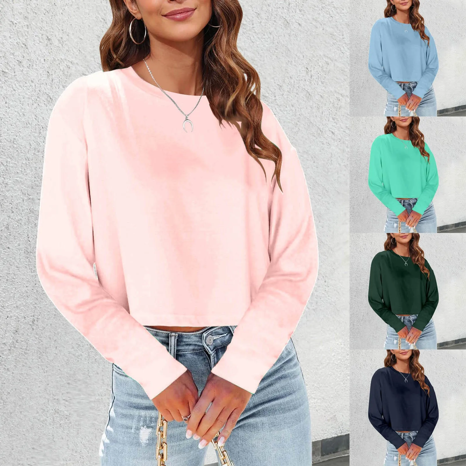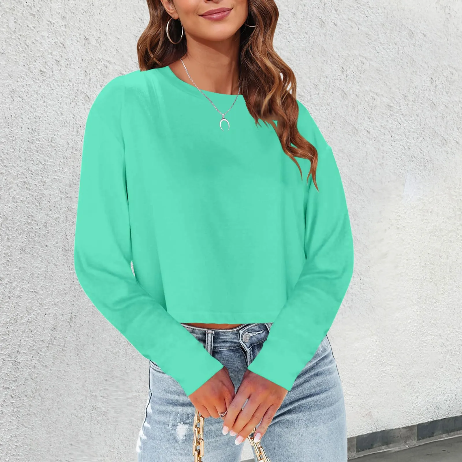 Casual Loose Long Sleeve V-neck Cropped T Shirt Women Spring 2024 Solid Drop Shoulder Basic Tee Top Streetwear Y2K Clothes