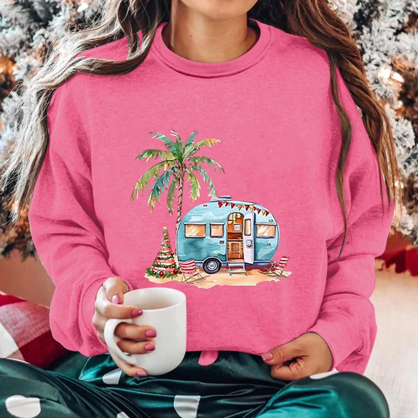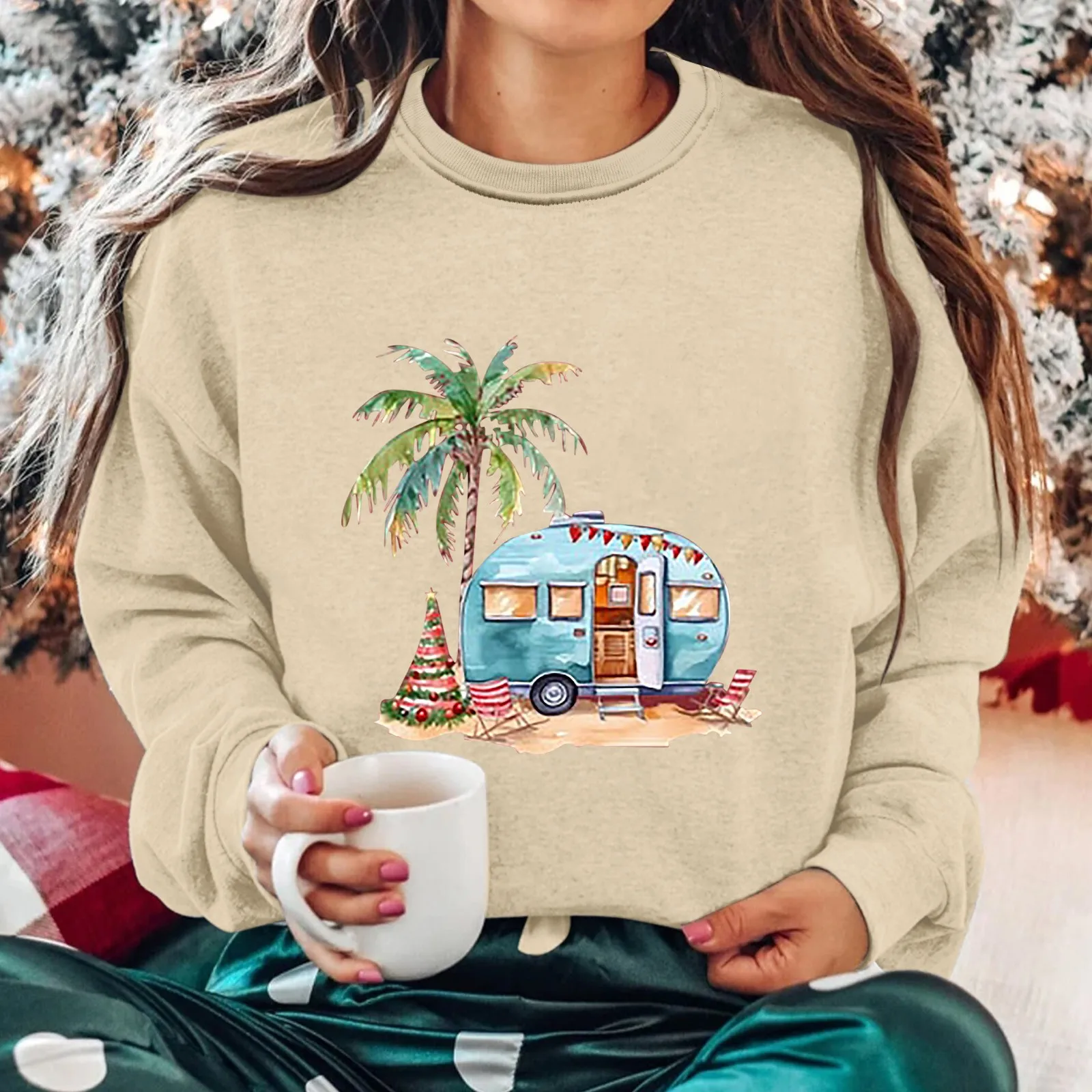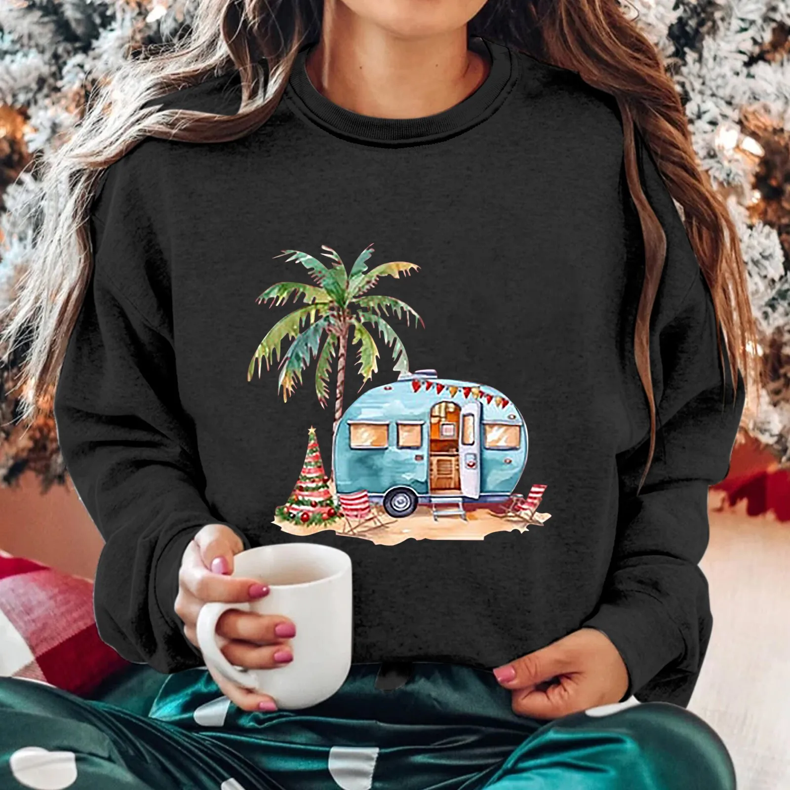 Name | Hood Sweatshirt Women Heavy Zip Hoodies Women Women's Round Neck Long Sleeved Coconut Tree Printed Hoodie |