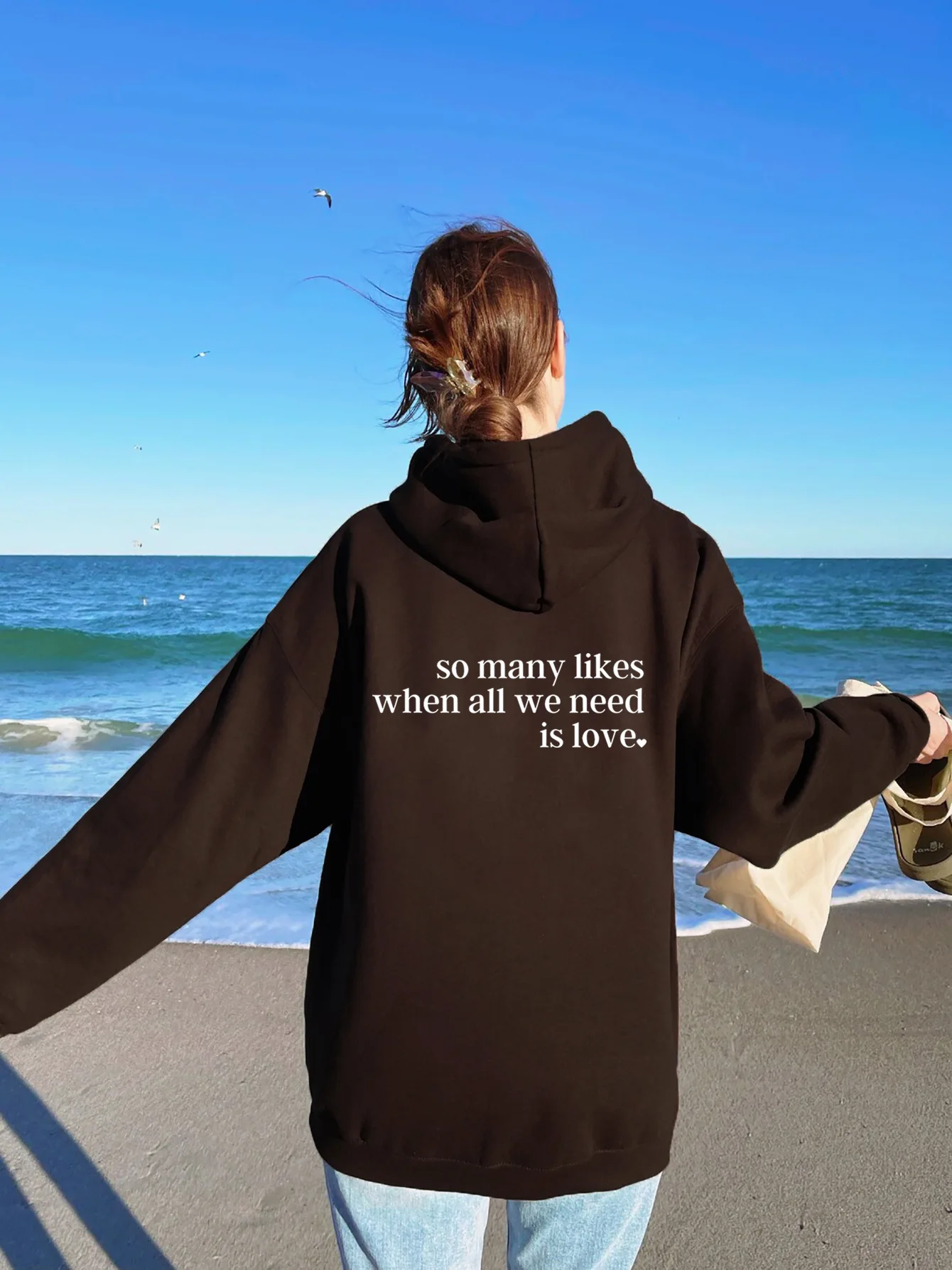 Fashion Dark Grey Hoodie Fleece Thicken Sweatshirt Long Sleeve Korean Letter Printing Baggy Female Top Pullover Harajuku Hoodie