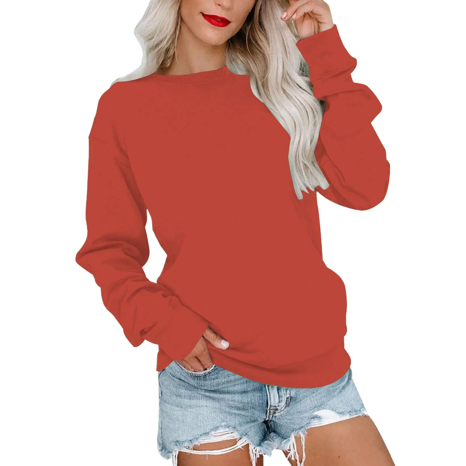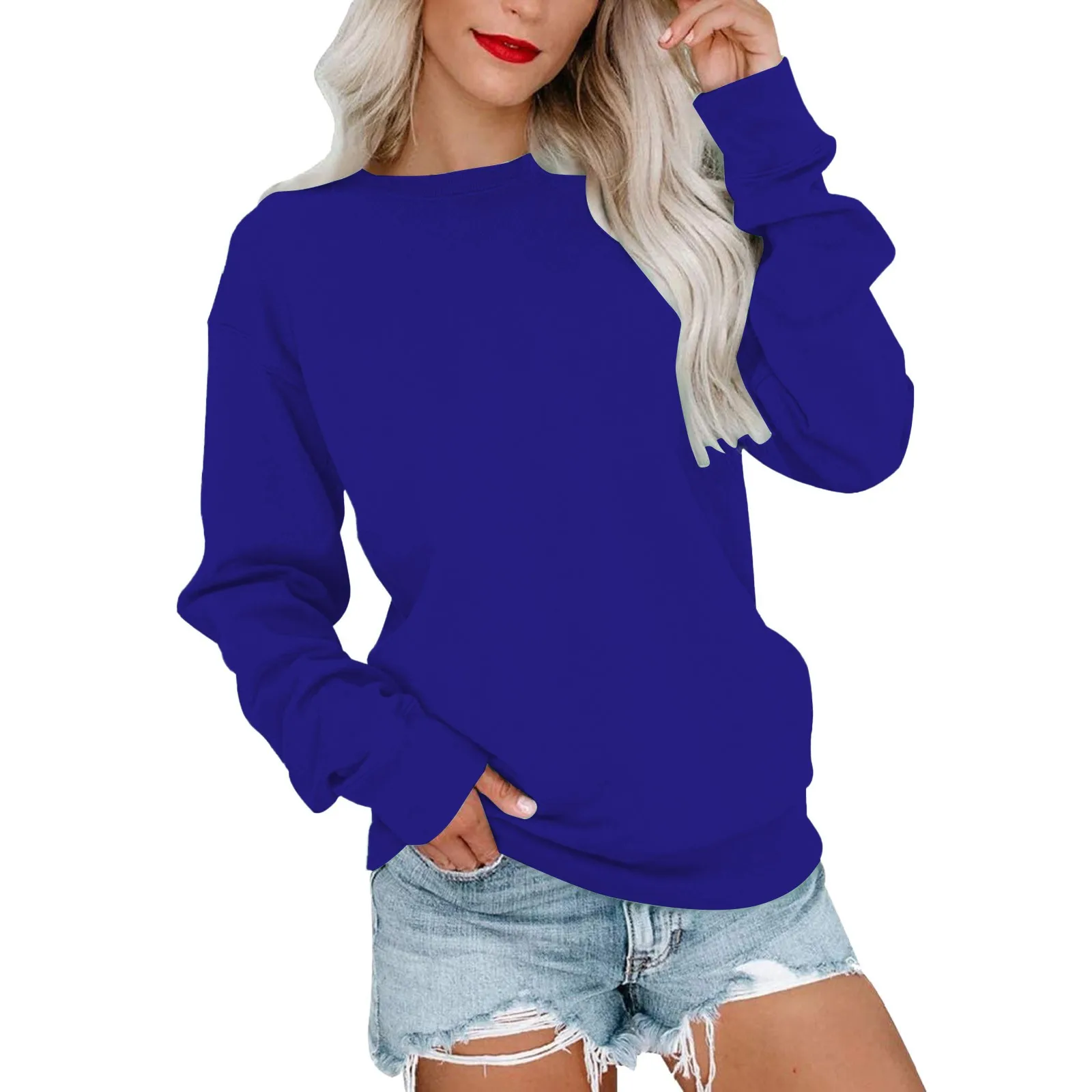 Womens Casual Round Neck Sweatshirt Long Sleeve Top Ladies Sweatshirts Pullover Ladies Long Sleeve Sweatshirts Ladies Sweaters