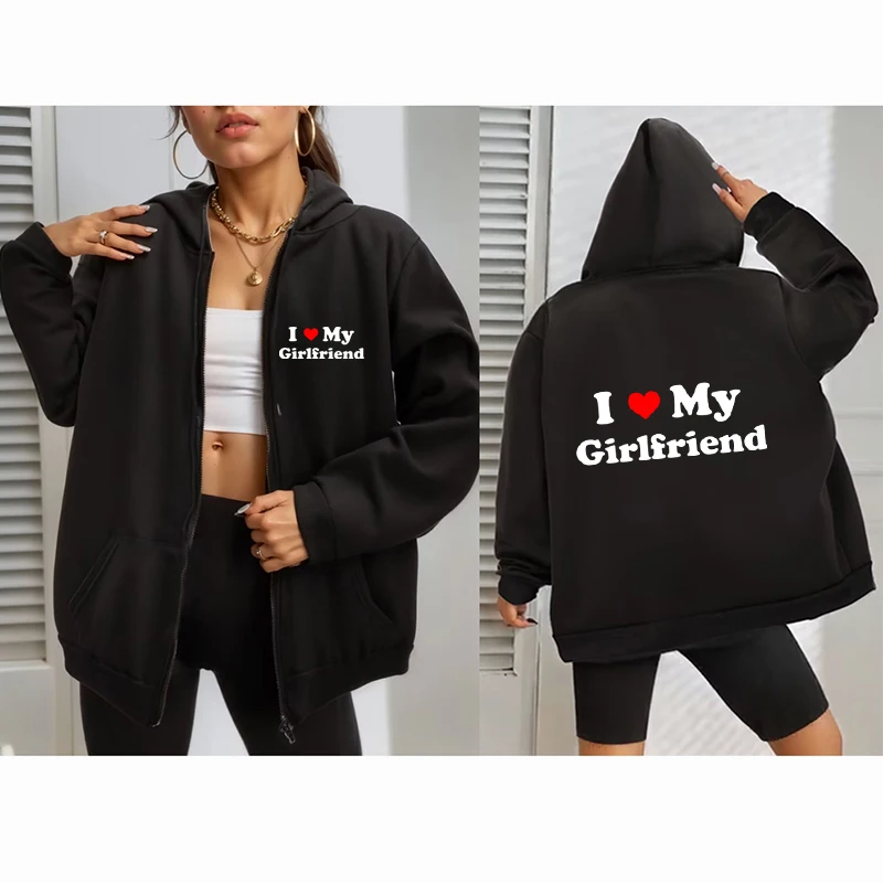 Name | Women Men Fashion Letter Printed Hoodie I Love My Boyfriend Hoodie Zip up Casual Sweatshirt Y2k Vintage Jacket Streetwear Gothic |