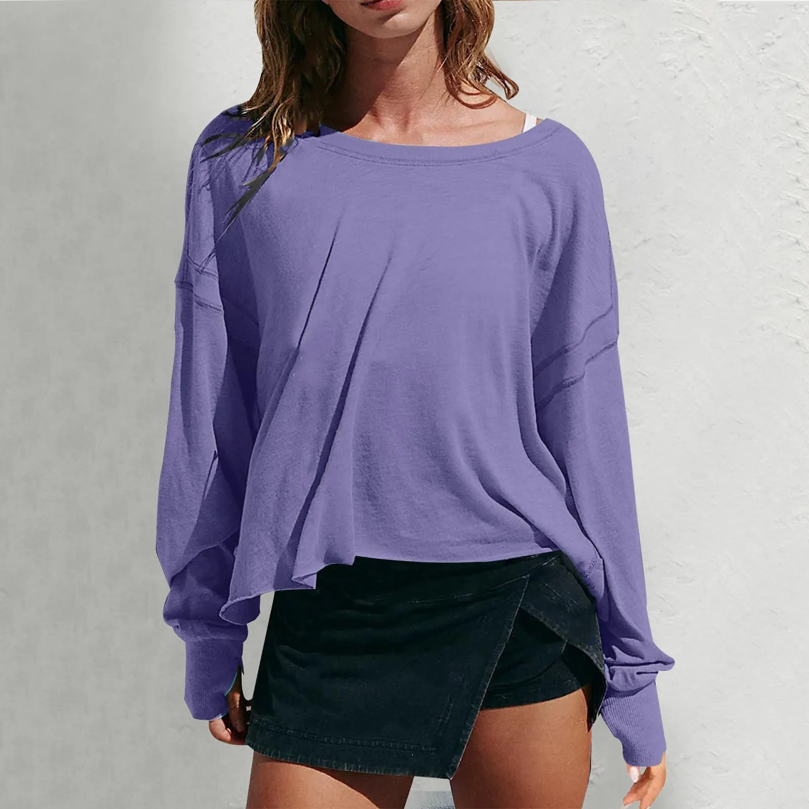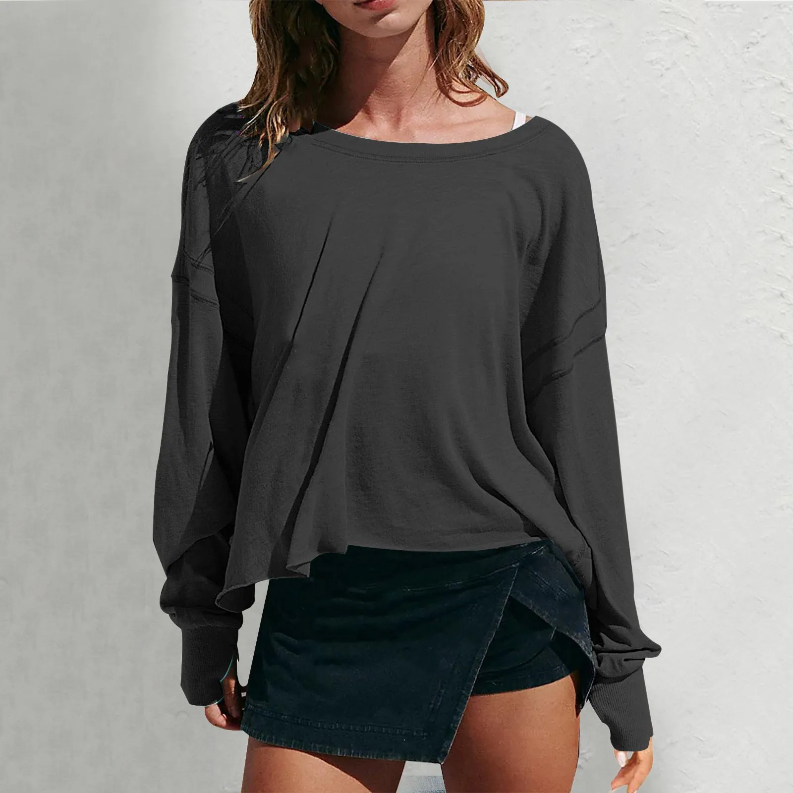 Round Neck Long Sleeve Open Back Workout Tops Women's Back Hollow Out Solid Color Hoodies Oversized Loose Backless Sweatshirts