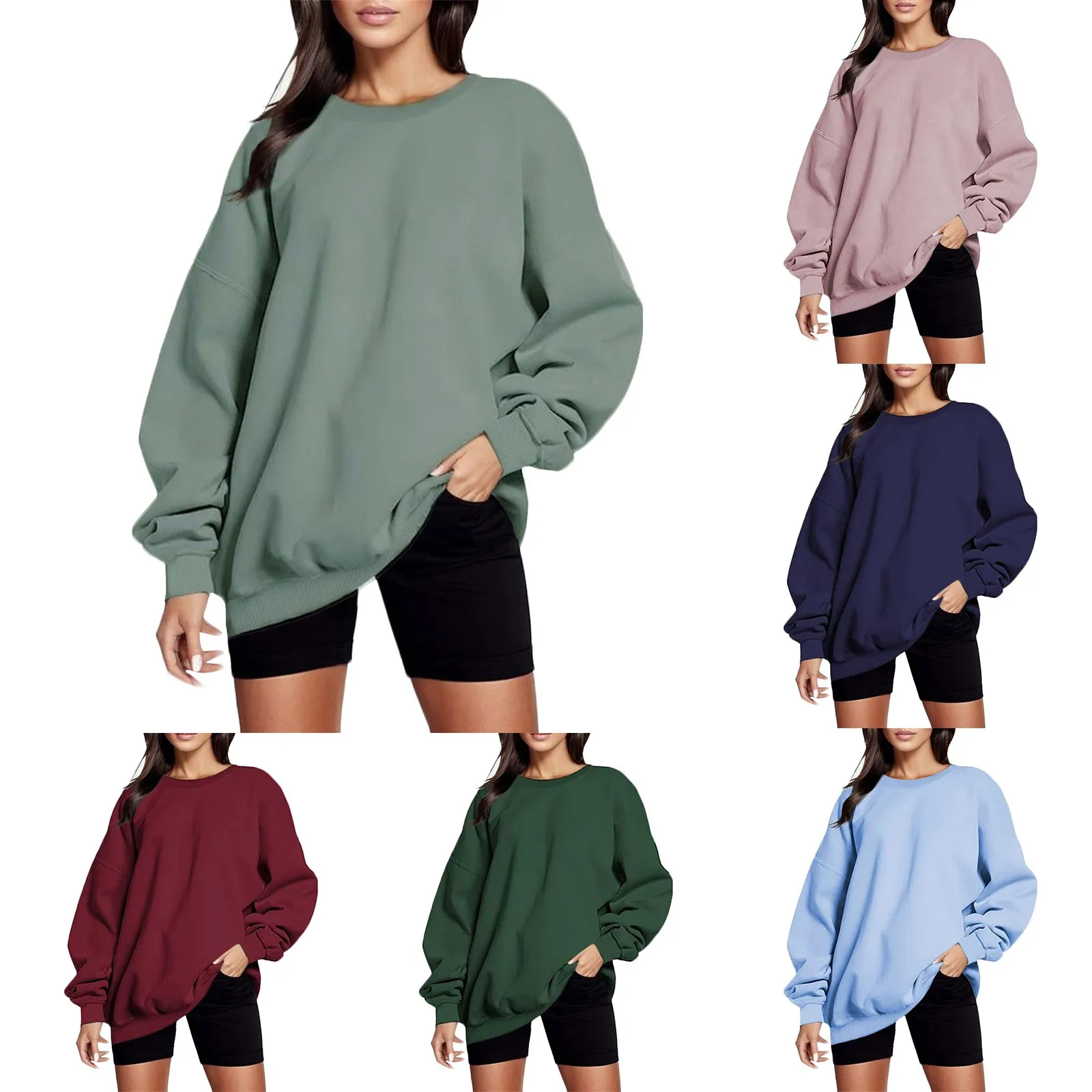 Name | Women'S Solid Color Sweatshirt Autumn And Winter Loose Comfortable Hoodie Round Neck Down Cuff Fashion Casual All Match Tops |