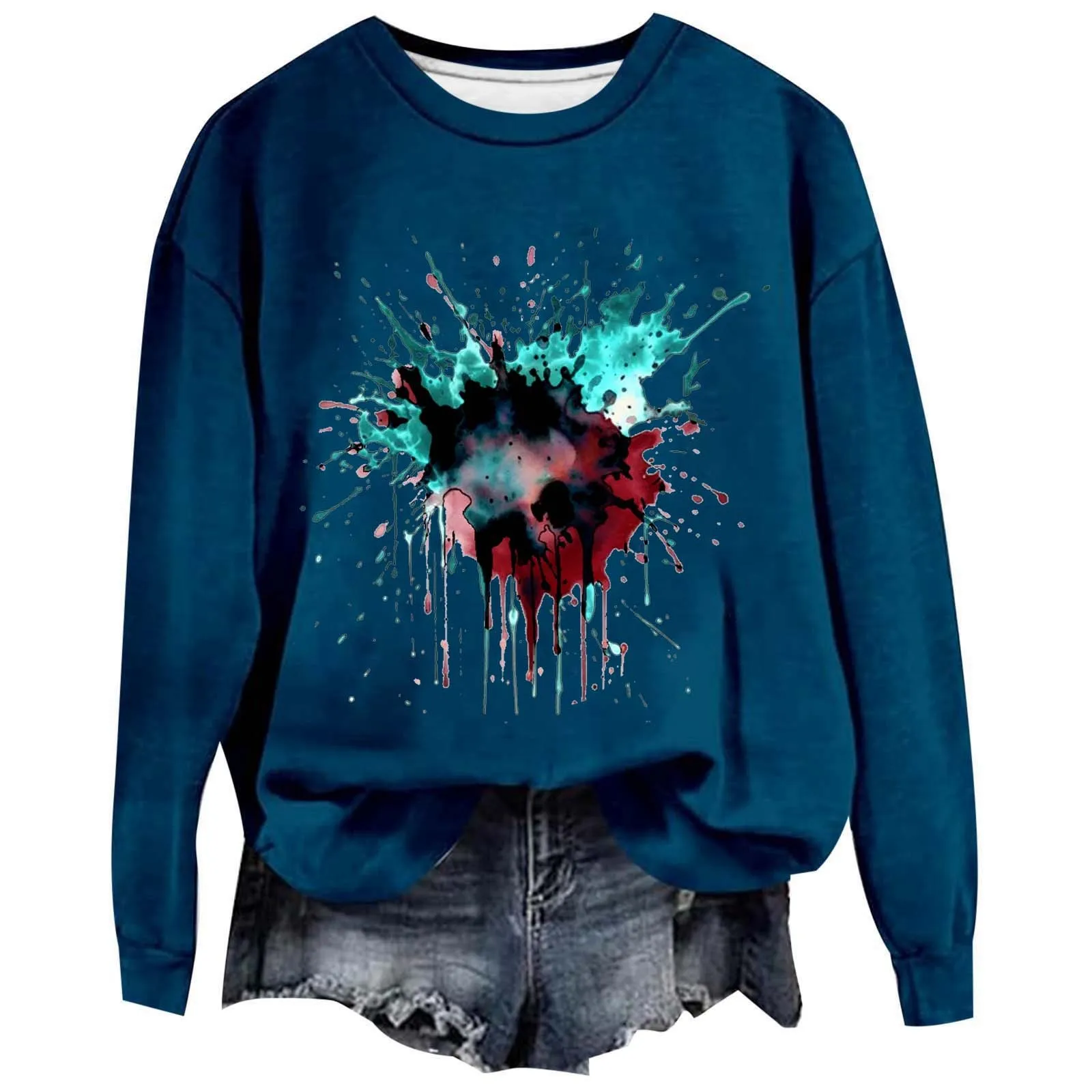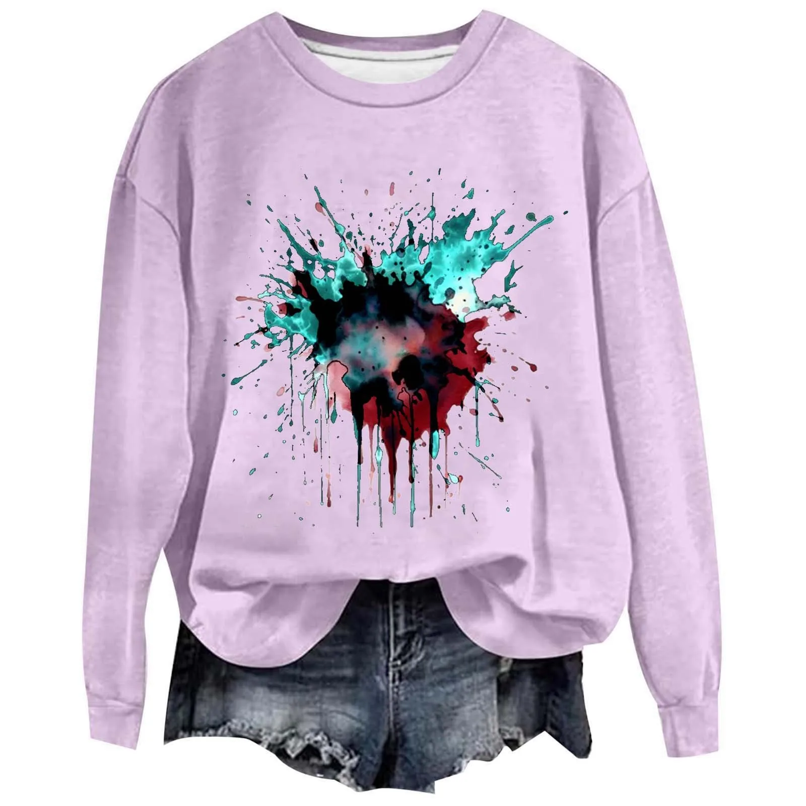 Women's Autumn Halloween Sportswear Printed Shirt Long Sleeved Round Neck Solid Color Halloween Pullover Sweatshirt Casual Top