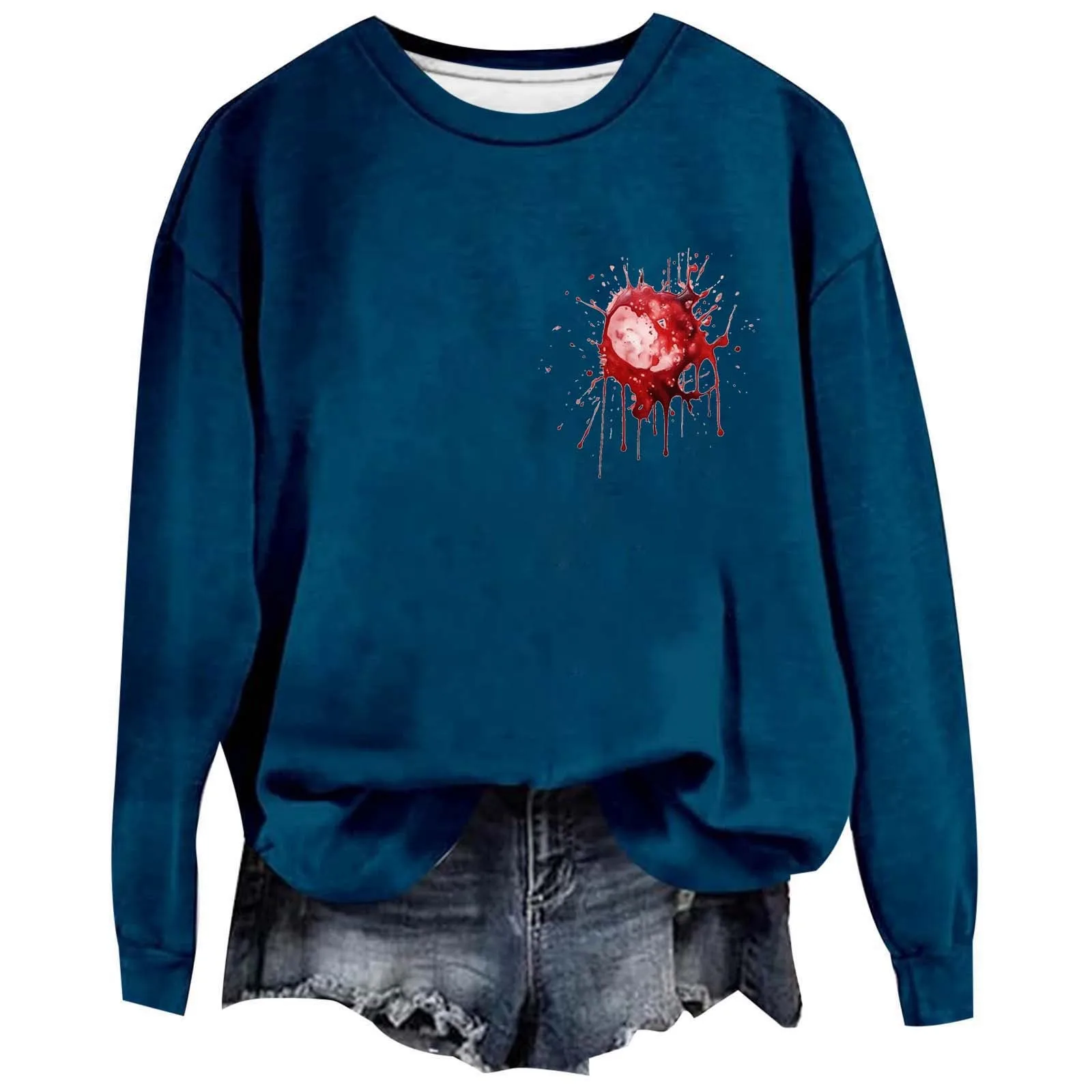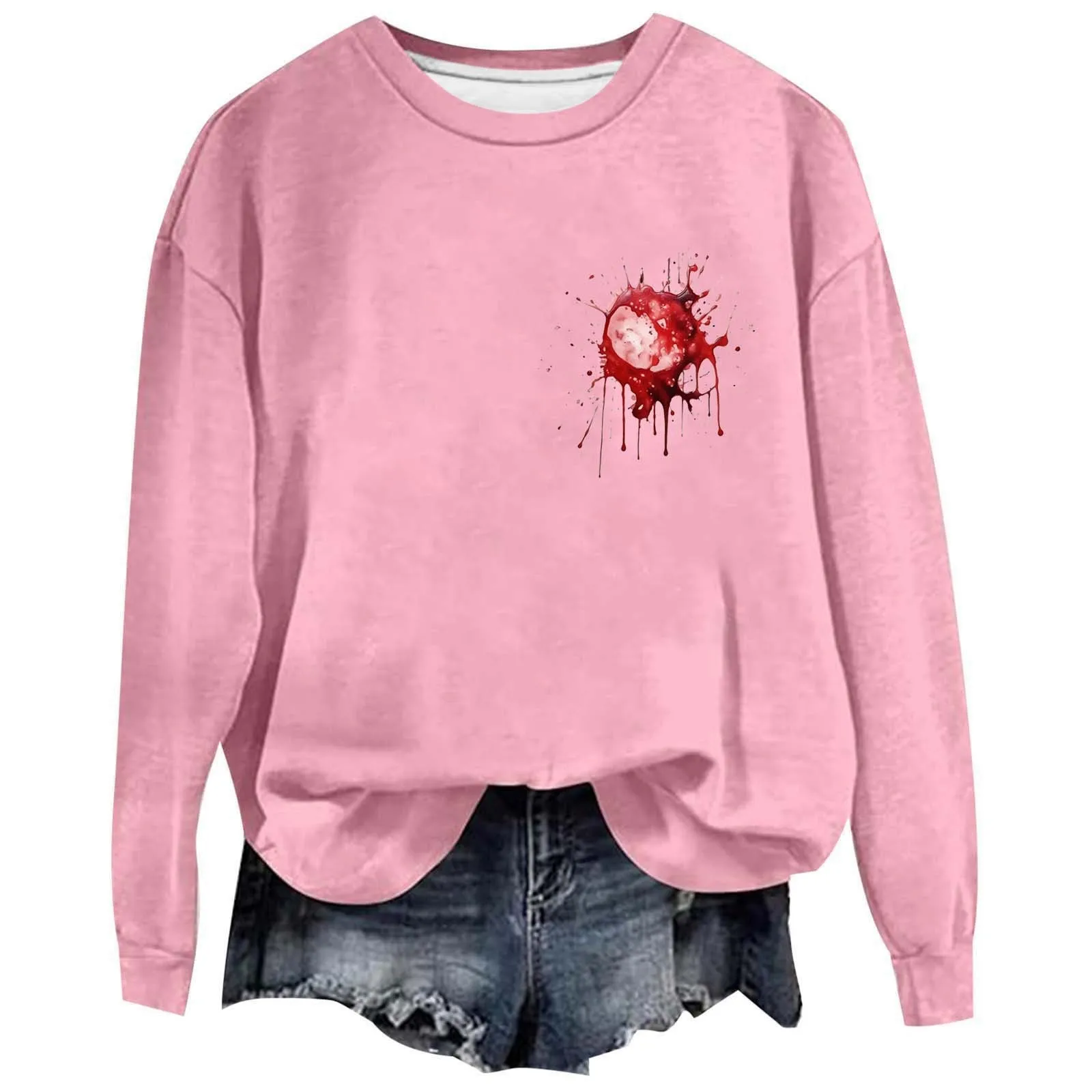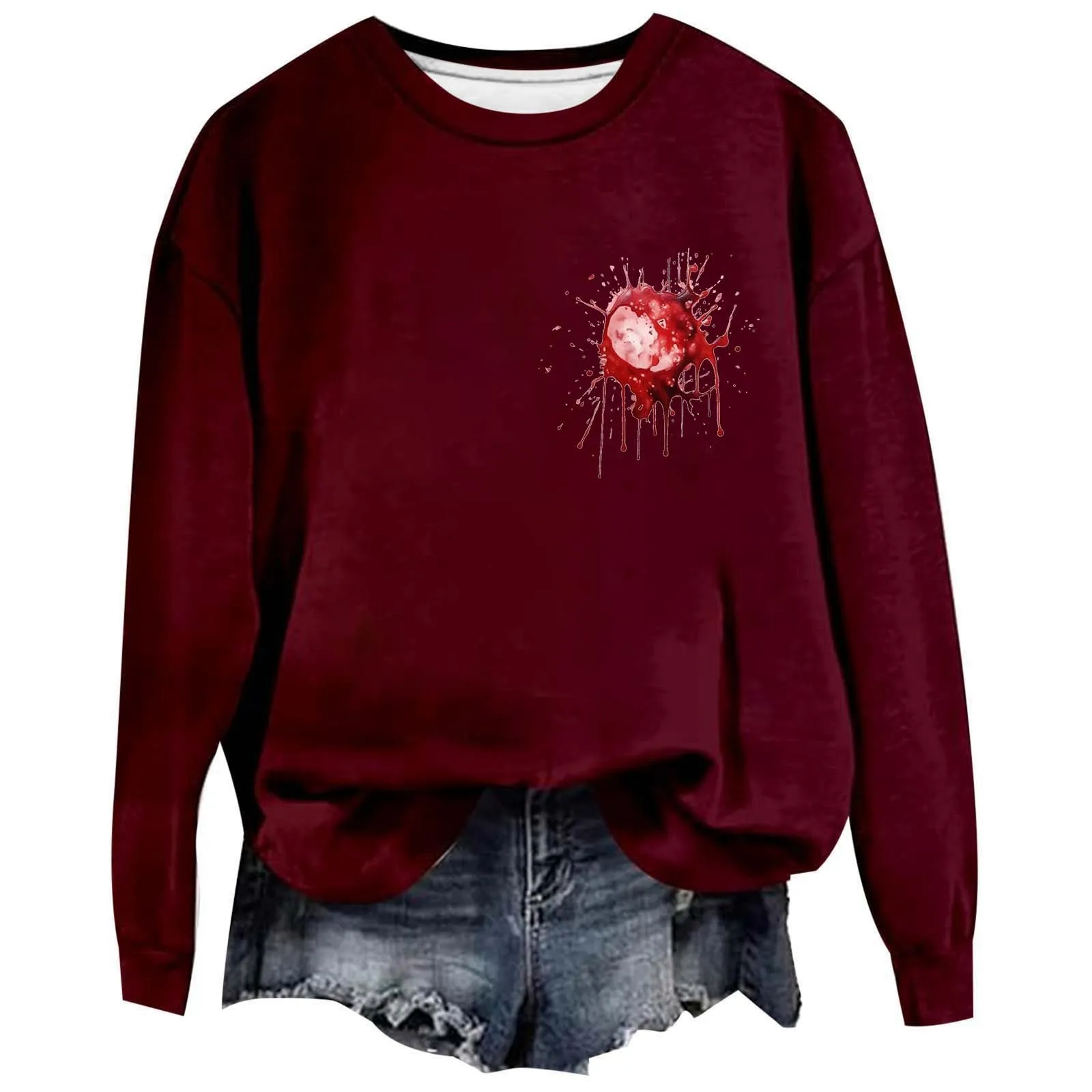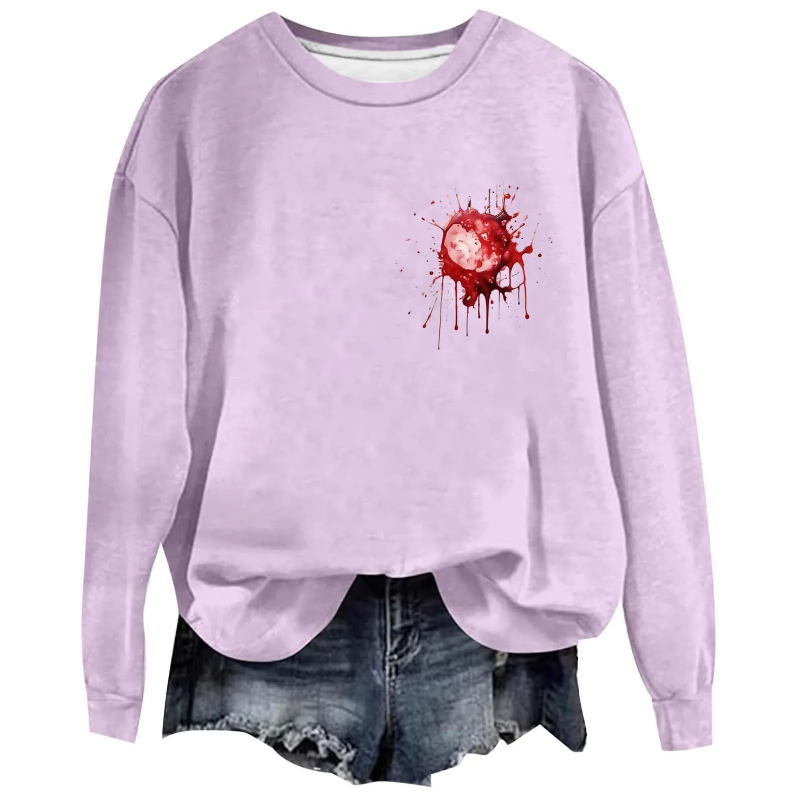 Women's Halloween Theme Sportswear Bloody Shirt Long Sleeved Solid Color Round Neck Halloween Pullover Sweatshirt Casual Top