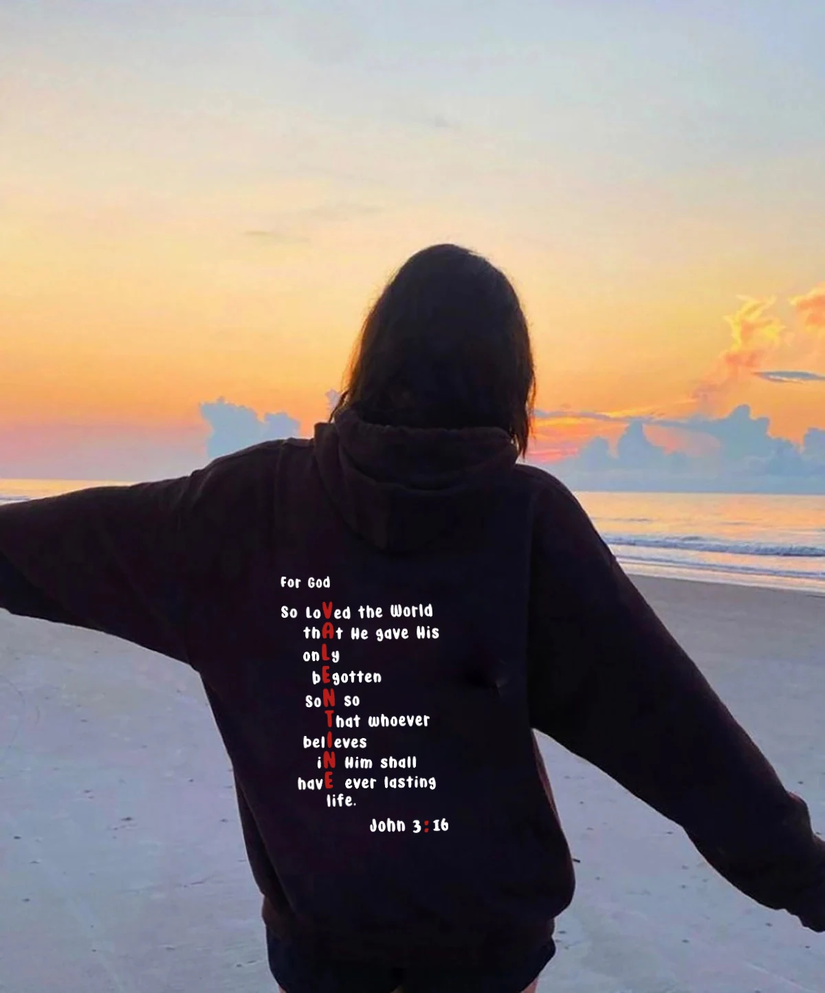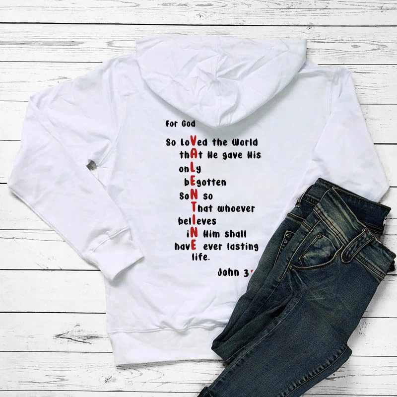 Name | For God So Loved colored back print Hoodies Valentine Bible Verse Pocket Hooded Women Casual cotton Christian Tumblr Hoodie |