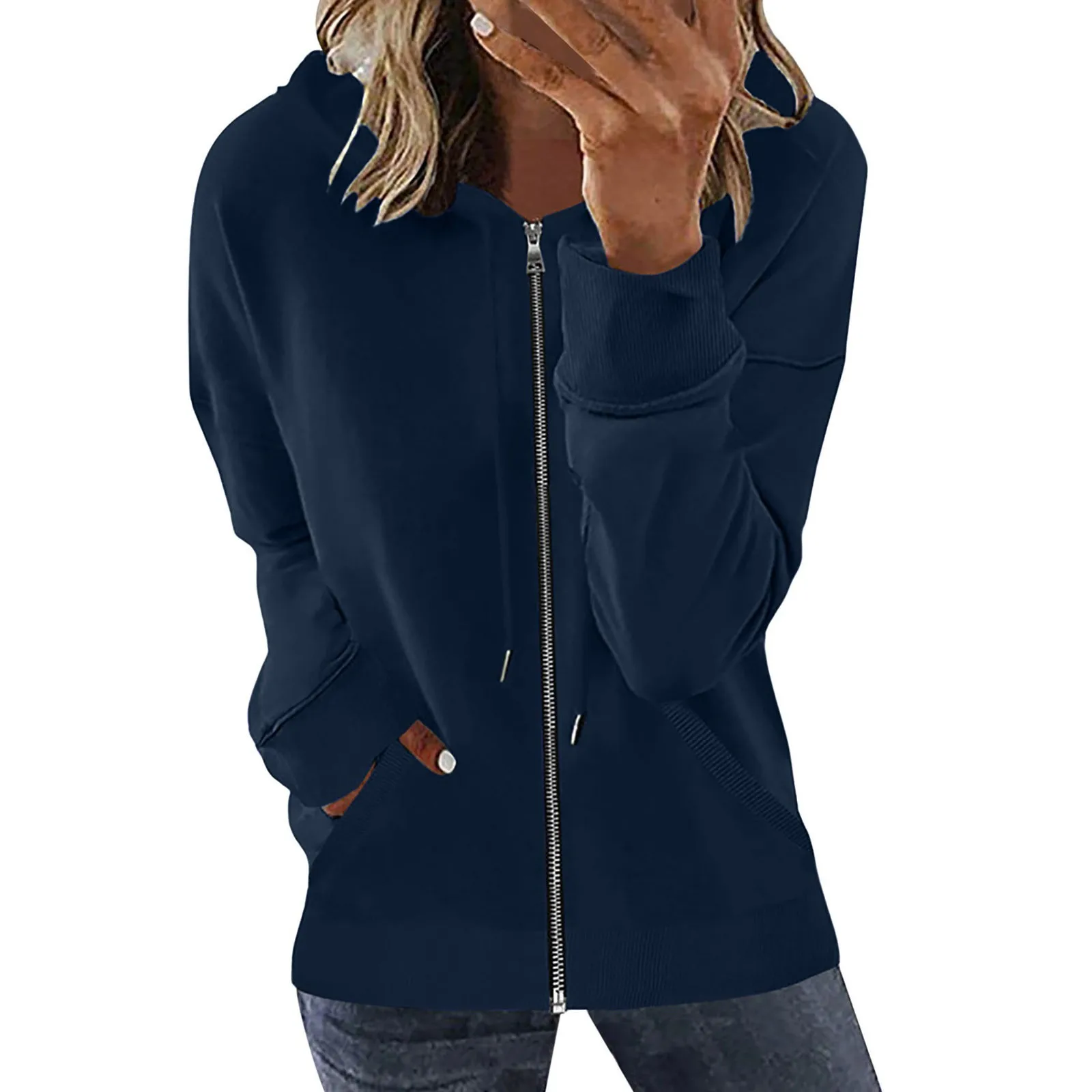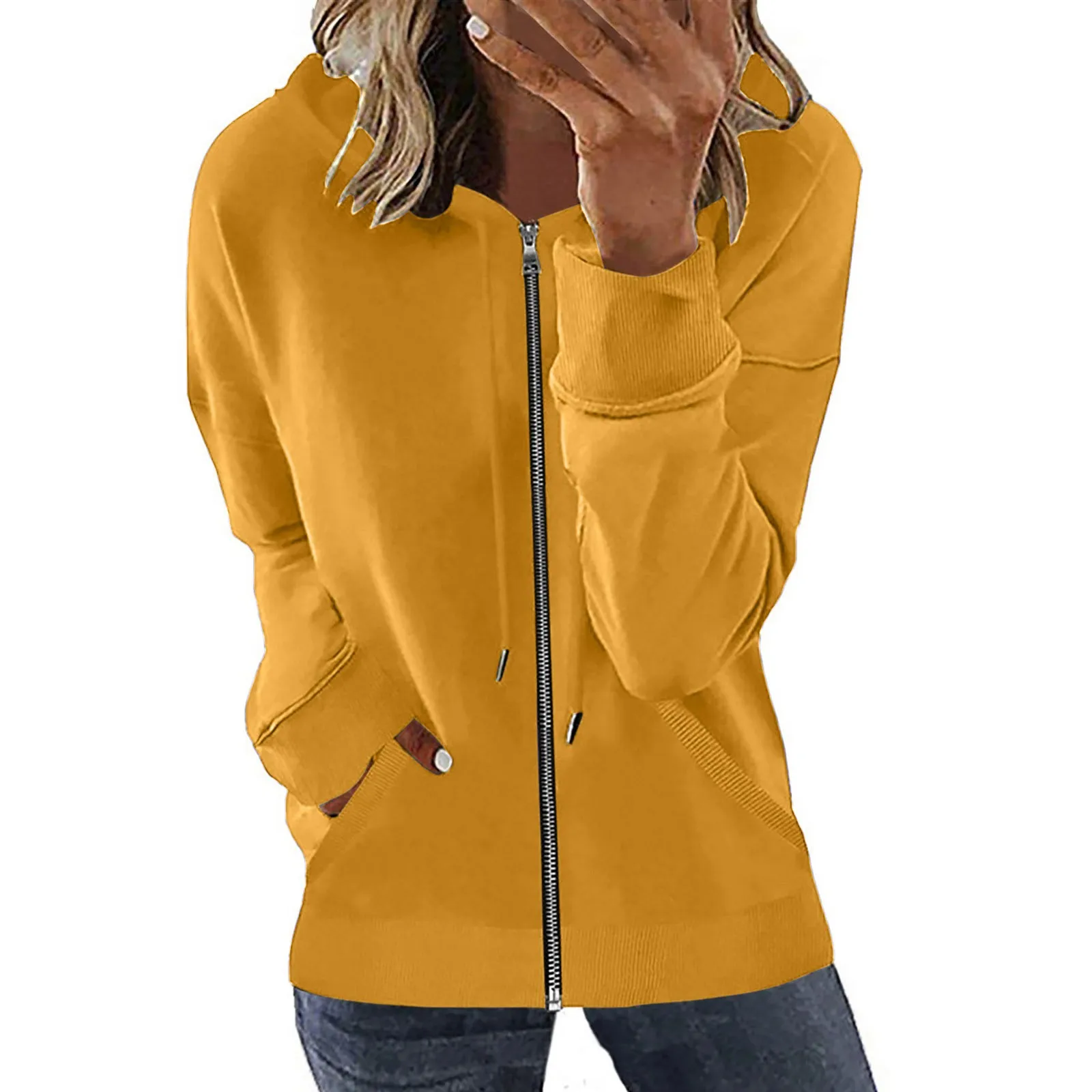 Pocket Long Sleeve Hooded Threaded Sweater Ladies Ladies Hoodie Plain Sweatshirt Womens Ladies Hoodies Pullover Sweatshirt