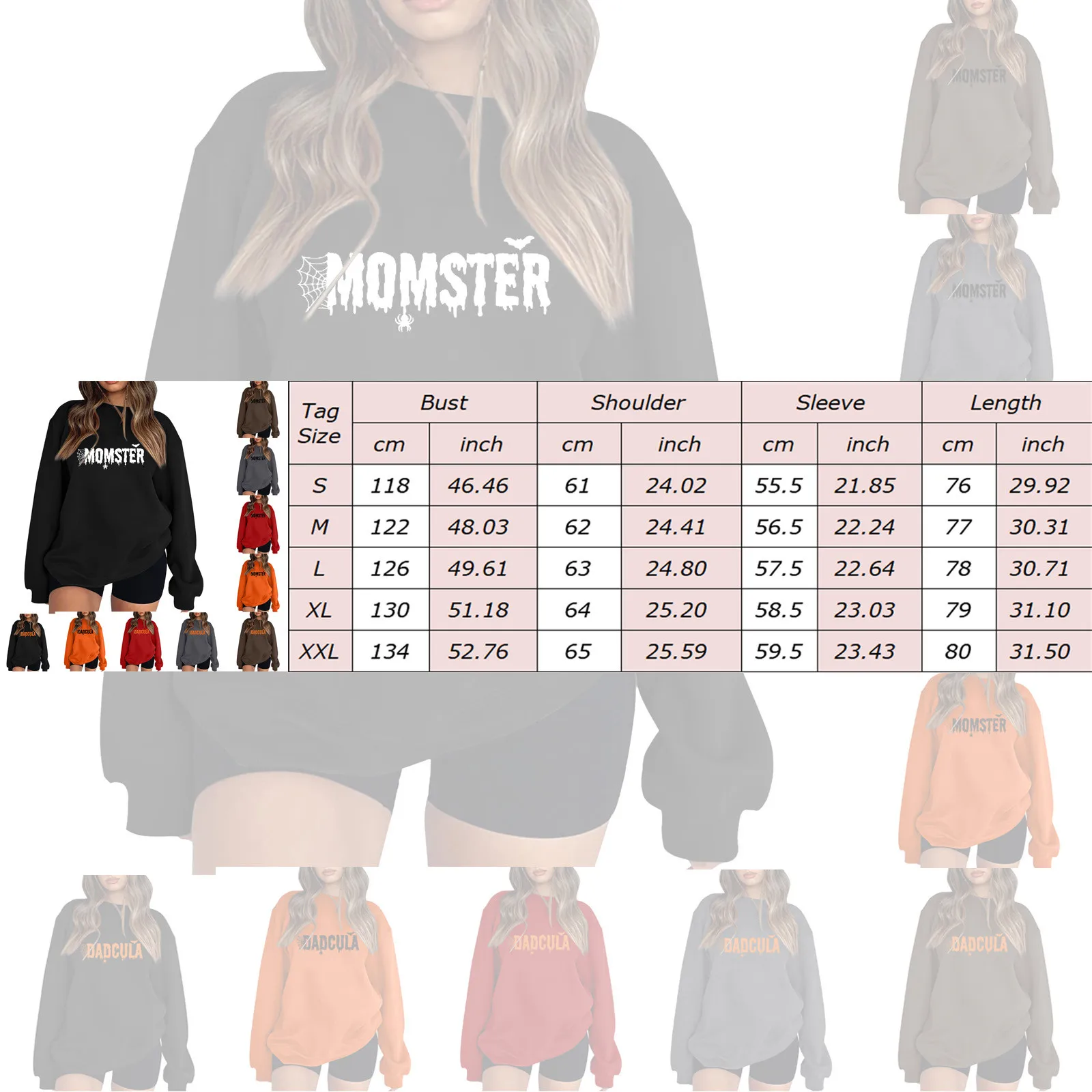 Name | Women's Loose Fit Halloween Monster Bat Spider Web Printed Off Shoulder Long Sleeve Round Neck Pullover Casual Sweatshirt |