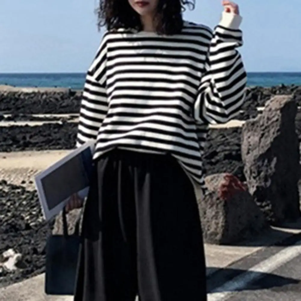 Name | Loose Women's Sweatshirts Hooded Soft All-match Stripe Design Casual Sweatshirt for Daily Wear |