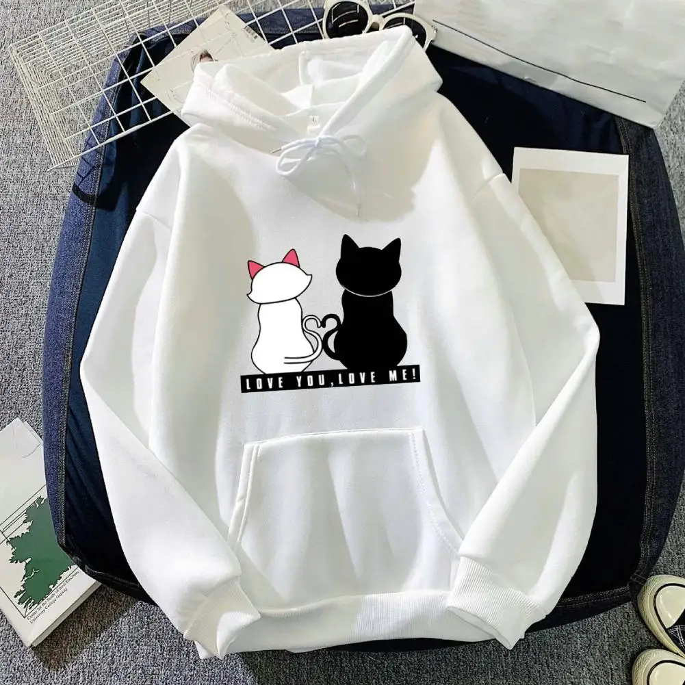 Name | Women Hoodie Warm Cozy Cartoon Cat Print Hoodie for Couples Plush Pullover with Drawstring Elastic Cuffs Patch Pockets Couple |