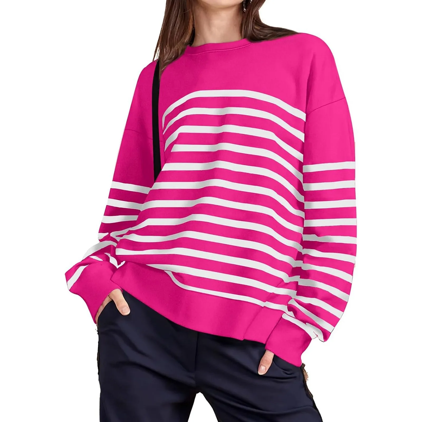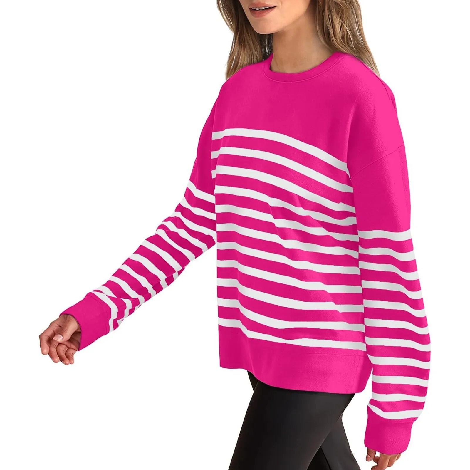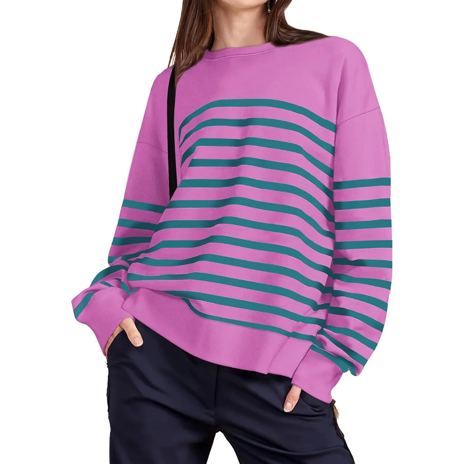 Women's Casual Sweatshirts Long Sleeve Striped Crewneck Pullover Sweatshirt Fashion Top Fall Long Sleeve Hoodies for Women