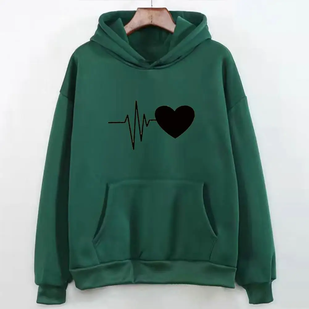 Name | Cozy Fleece Hooded Top Cozy Heart Print Unisex Hoodie with Drawstring Big Patch Pocket for Fall Winter Thick Plush for Comfort |