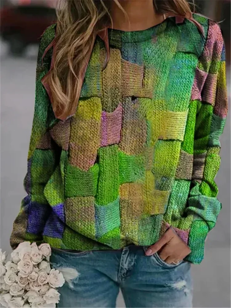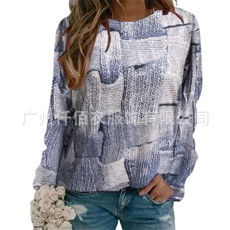 Name | Round Neck Women Full Sleeve Print Loose Casual Regular Tops Splice Autumn Winter 2023 Ladies Thick Sweatshirts Pullovers |