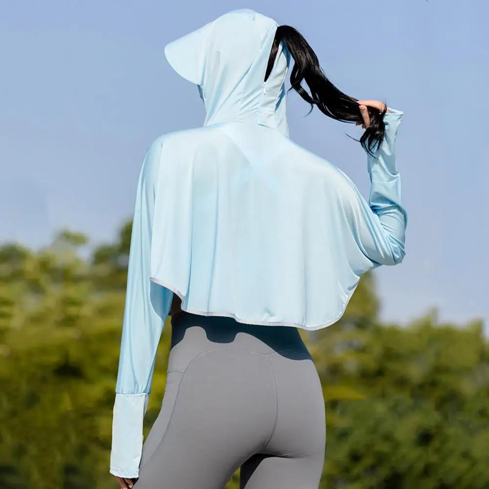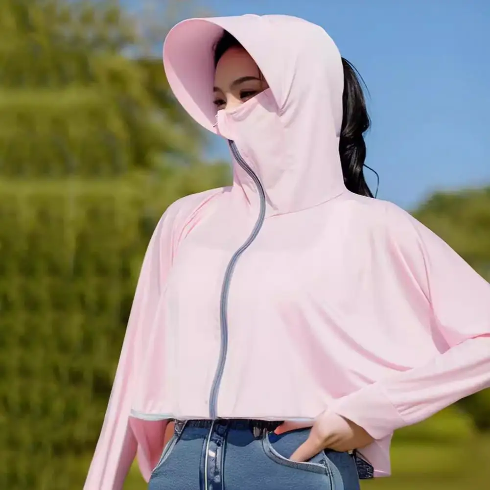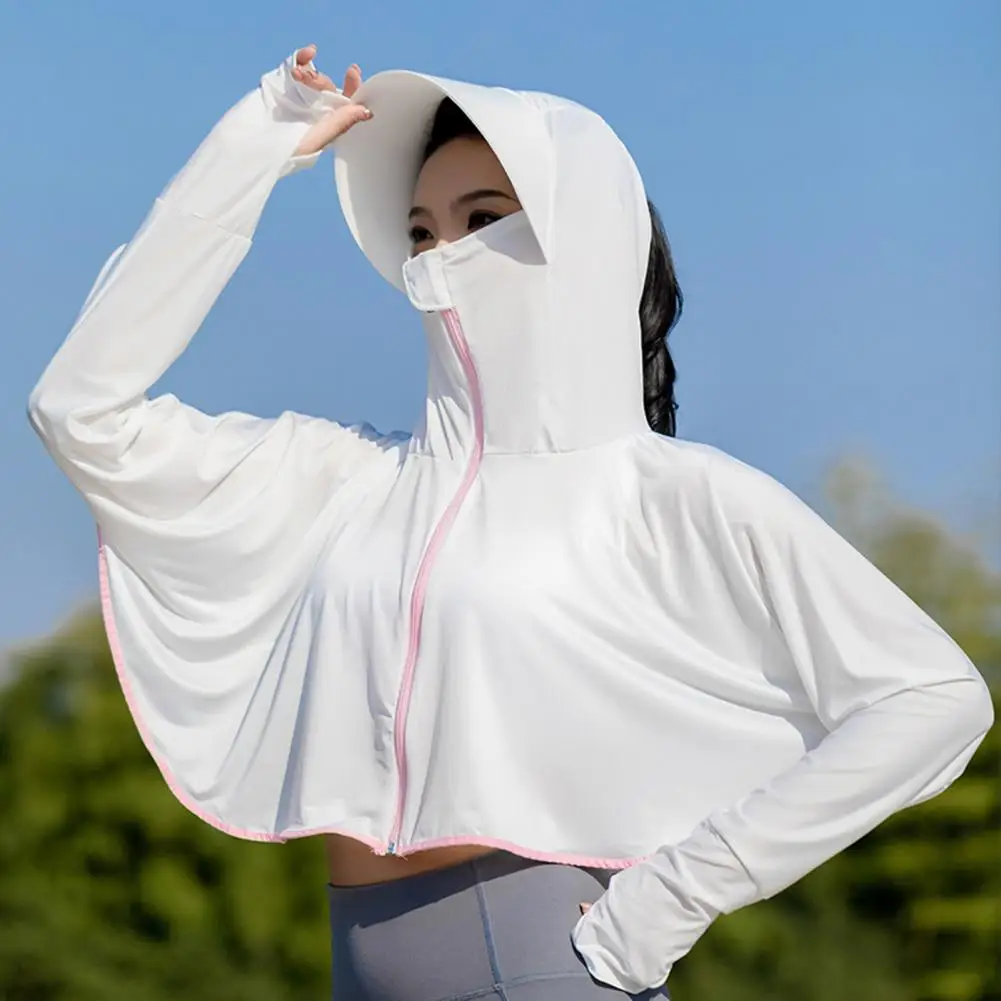 Summer Ice Silk Sunscreen Coat Clothing Women'S Solid Ultra-Thin Unisex Sun Protection Clothing Detachable Brim Hooded Jacket