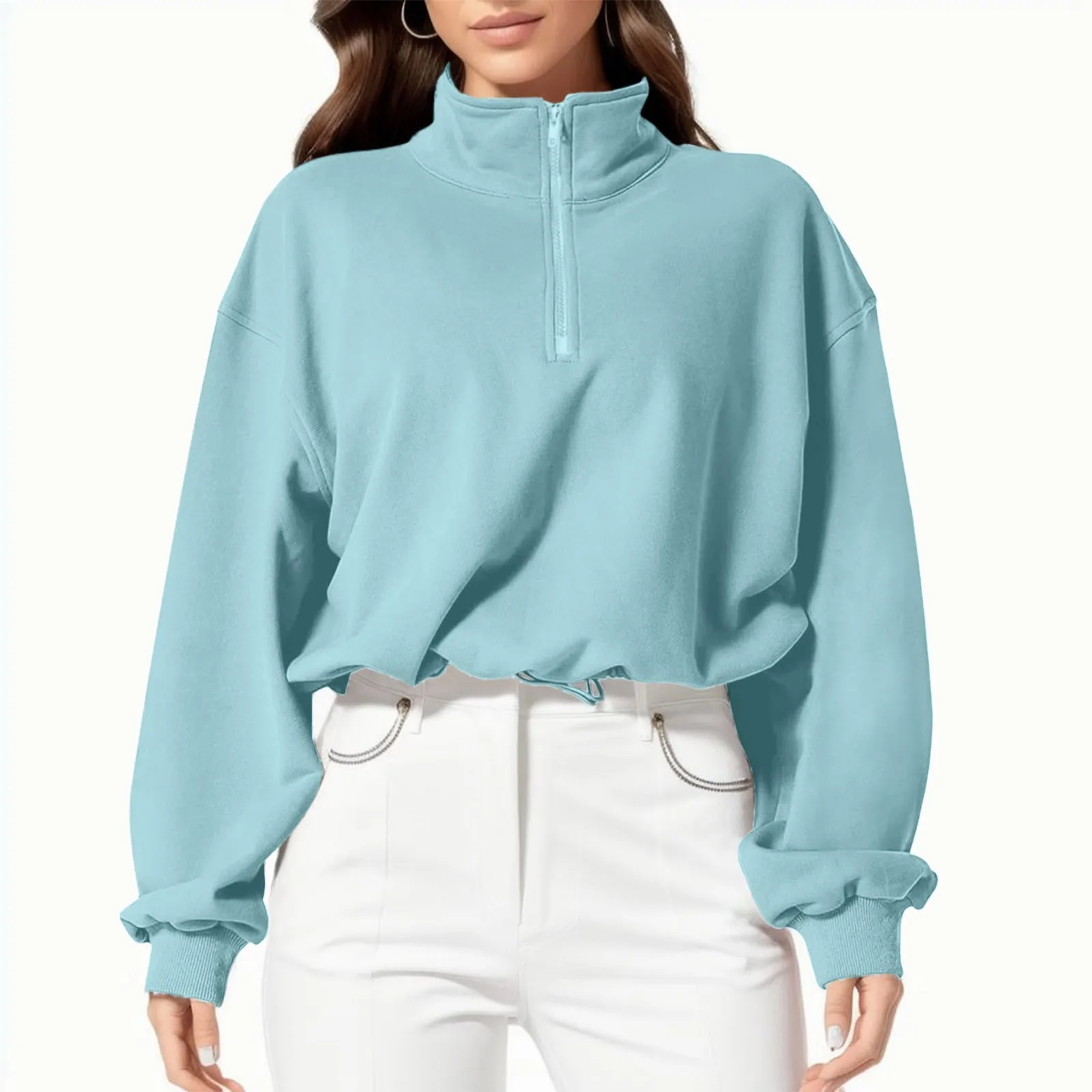 Zip Up Sweatshirt Women Vintage Korean Fashion Streetwear Fleece Crop Jacket Tops Loose Fit Thumb Hole Autumn Jacket Coats