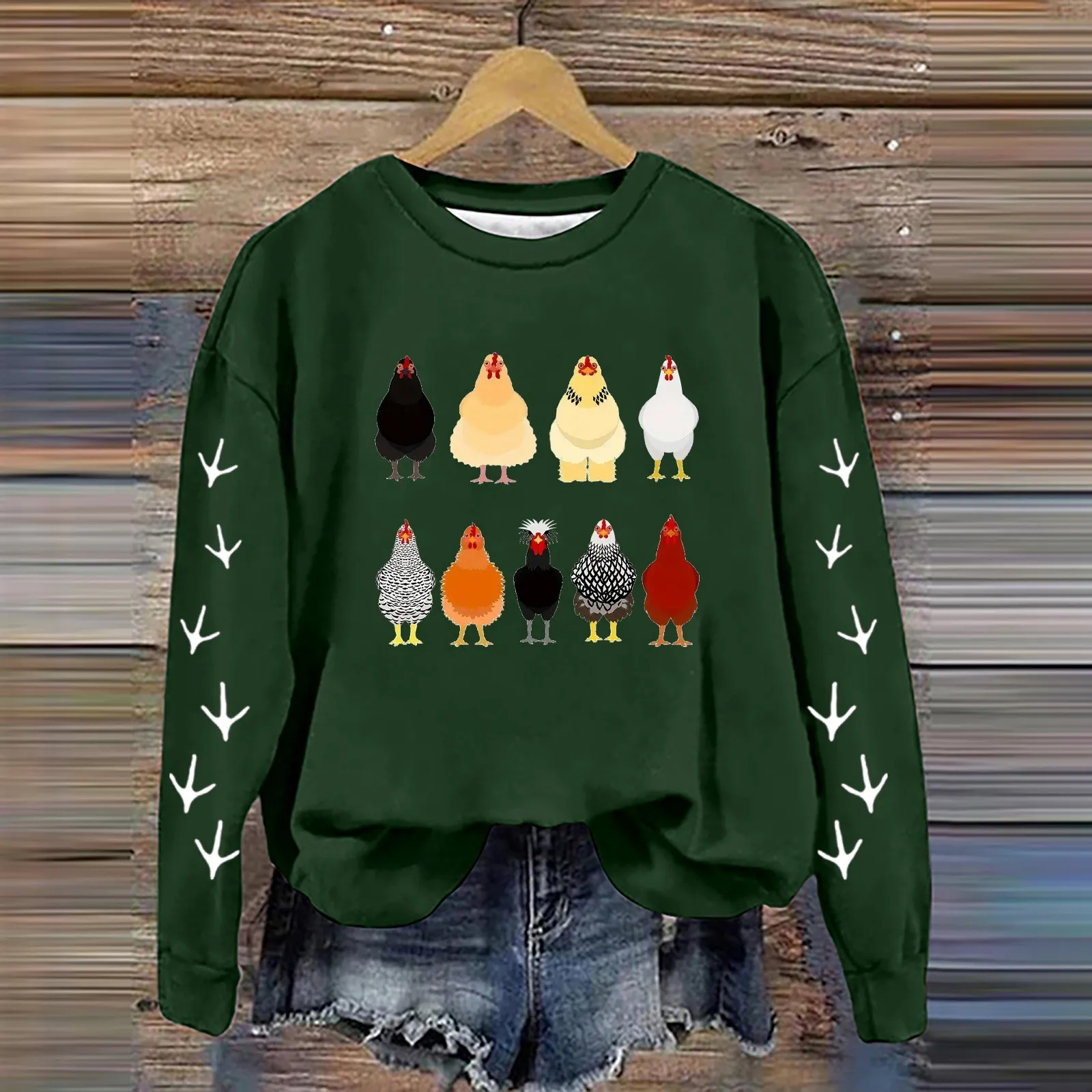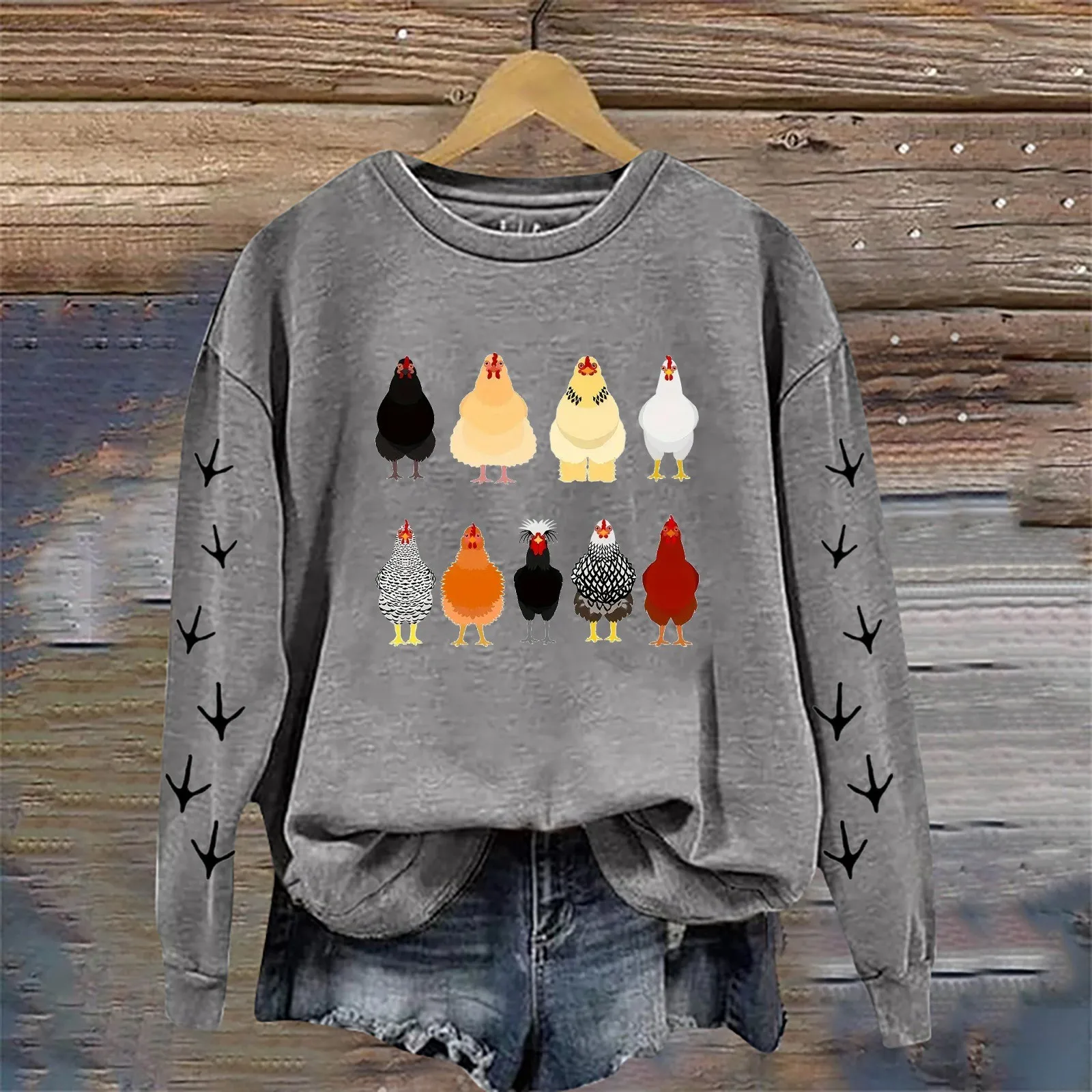 Chicken Graphic Print Sweatshirt Women Soft Goth Crewneck Top Ladies Autumn Vintage Long Sleeve Pullovers Casual Tops