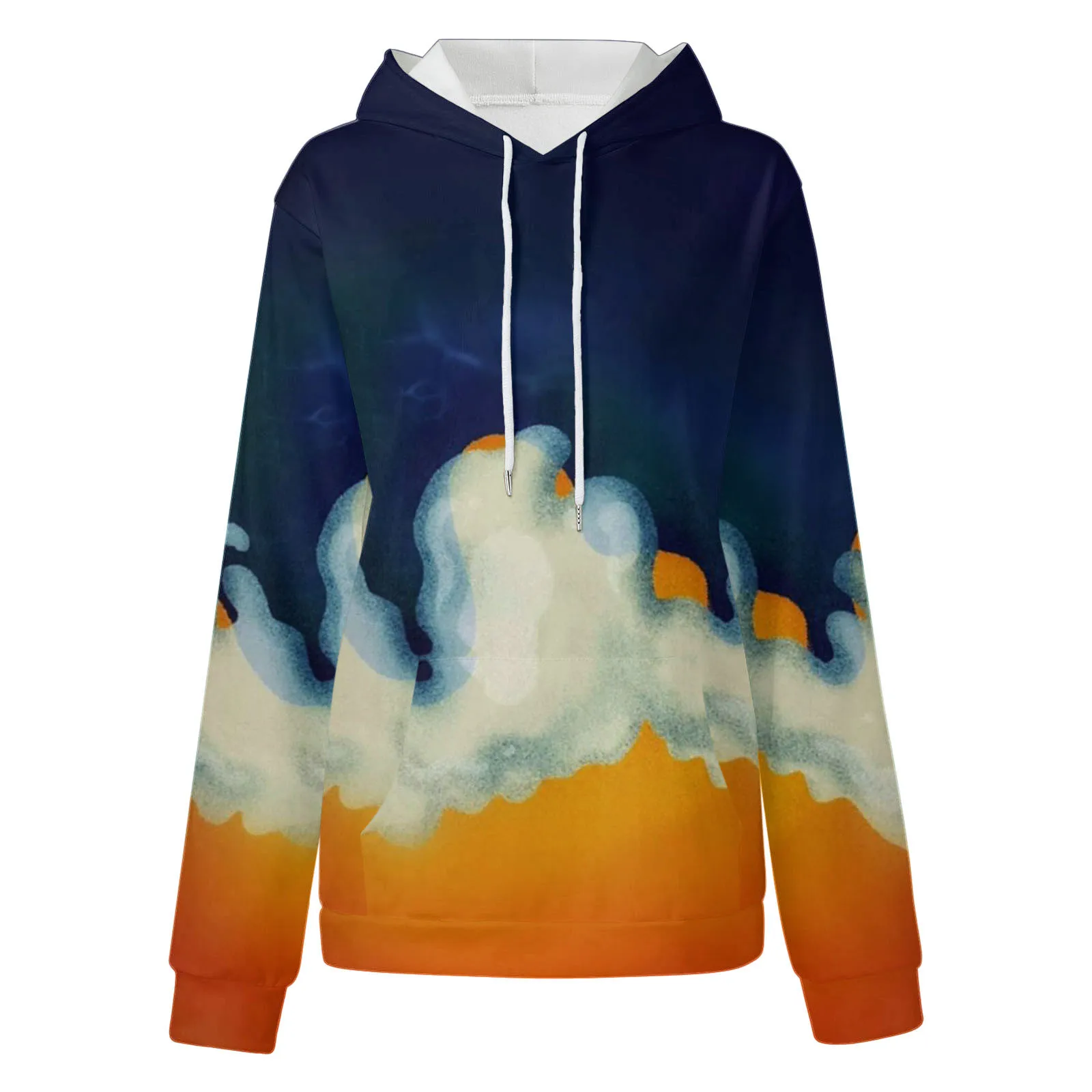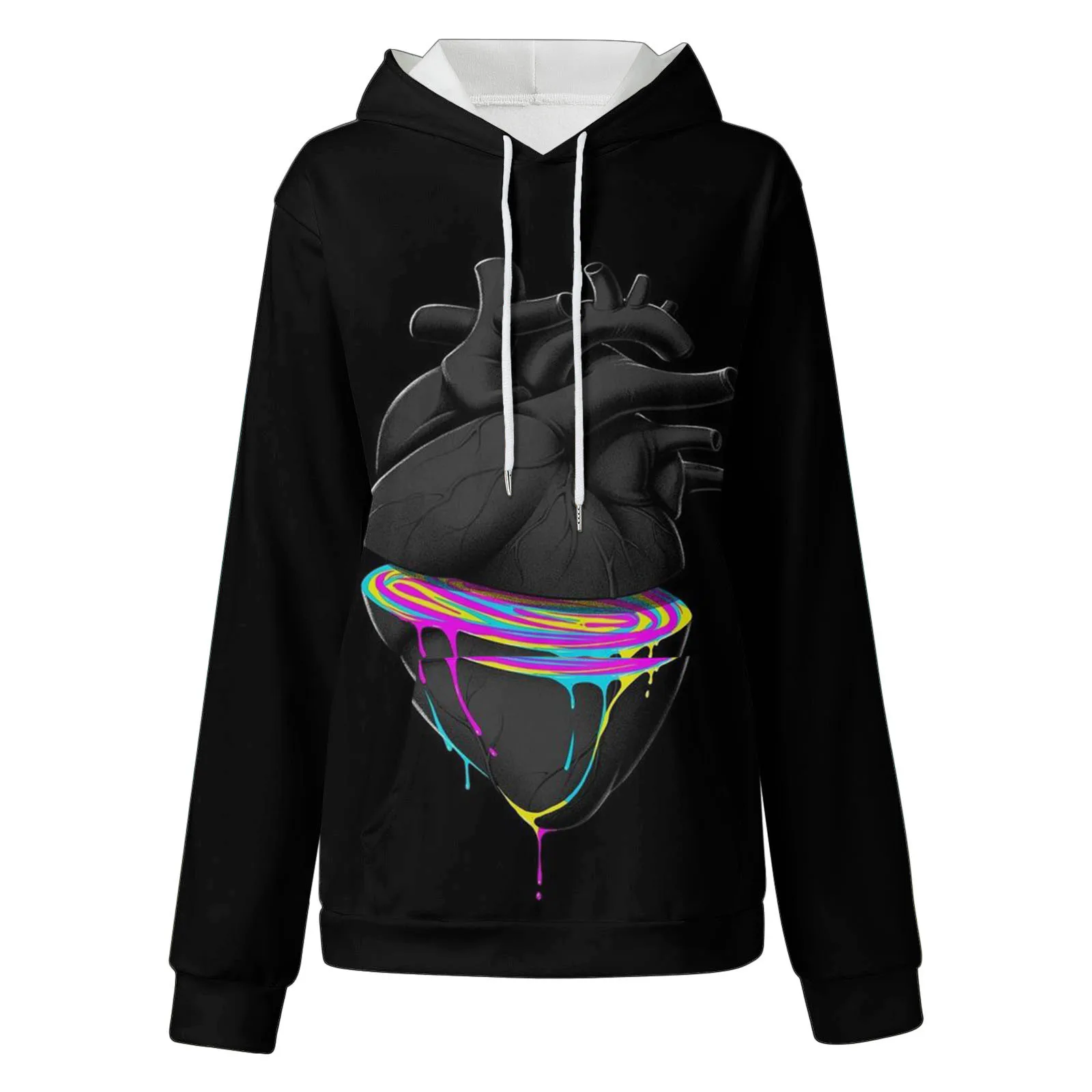Women's Loose Sweatshirts Hoodie Casual Colorful Printing Long Sleeve Drawstring Hoodies With Pockets Fashion Pullover Tops