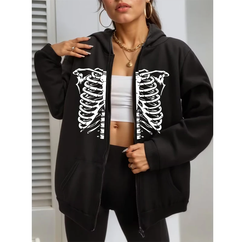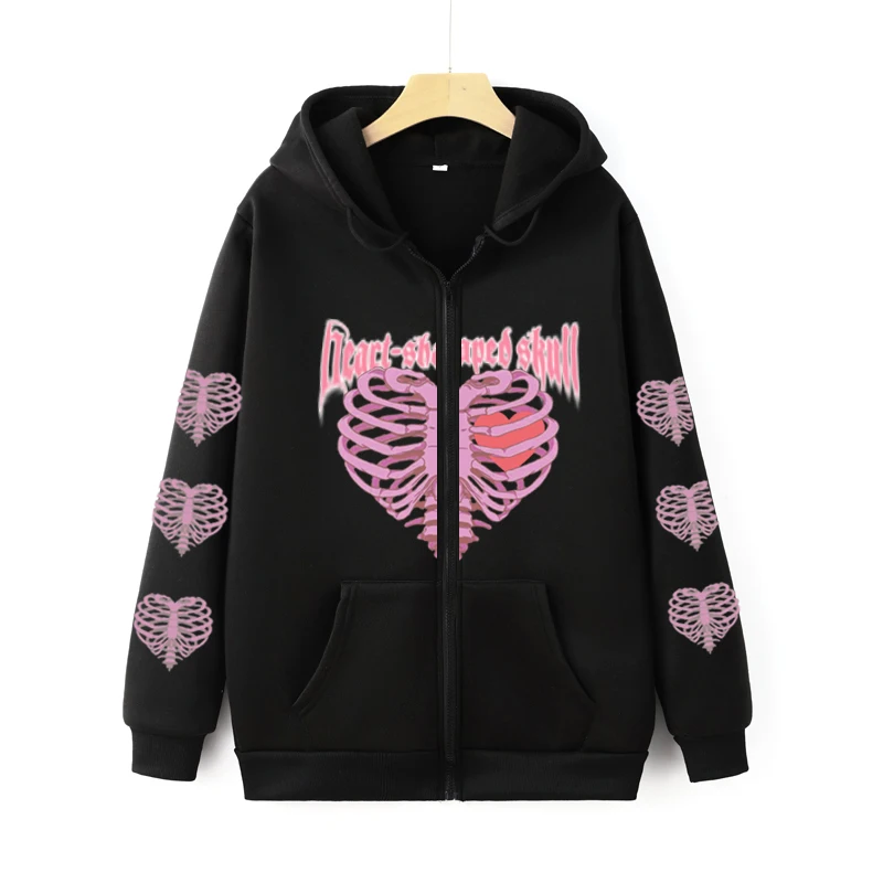 Name | Y2k Vintage Aesthetic Women/Men Hoodies Streetwear Skeleton Bones Graphic Zip up Sweatshirt Grunge Hip Hop Winter Tops Harajuku |
