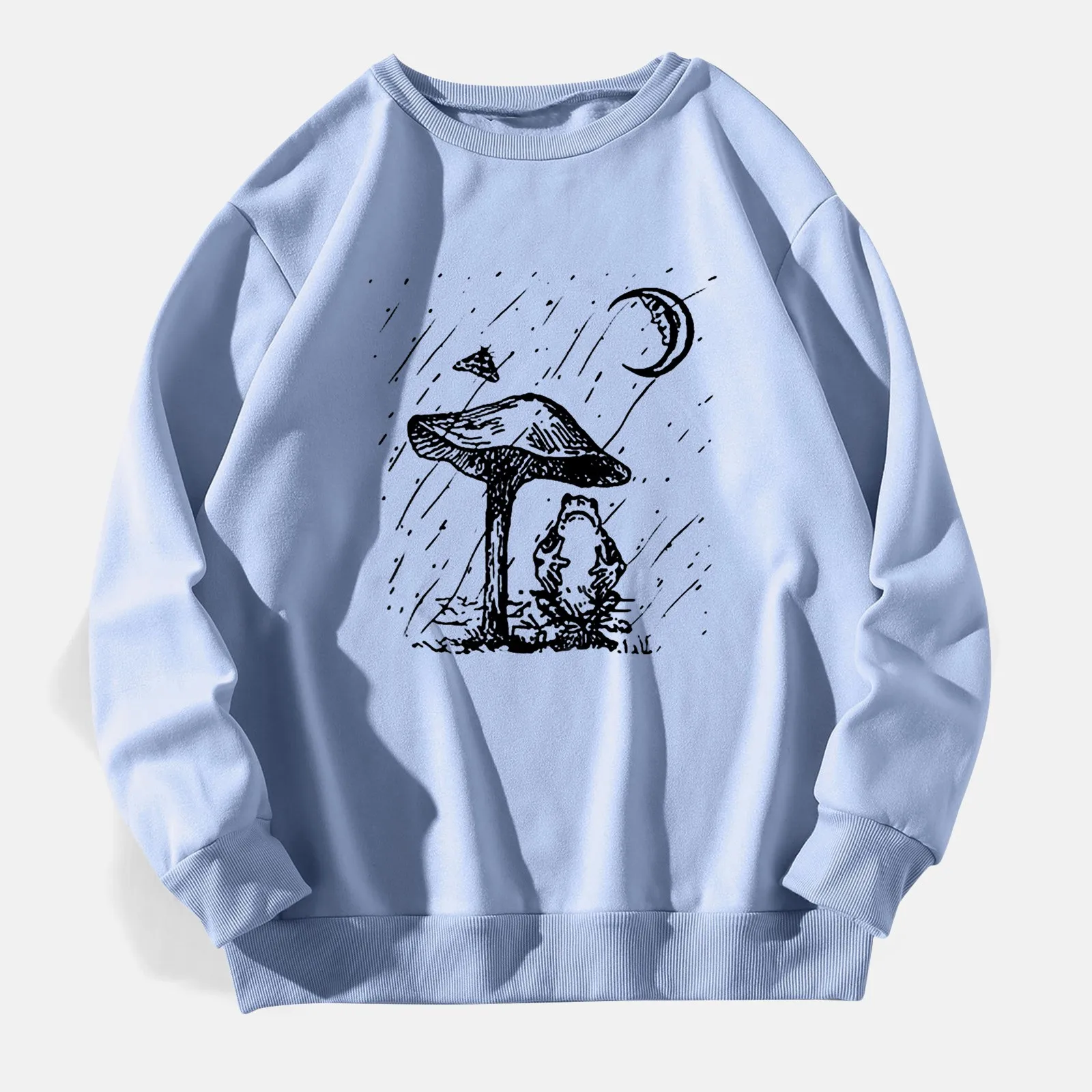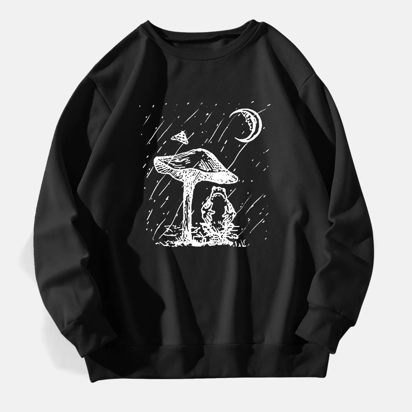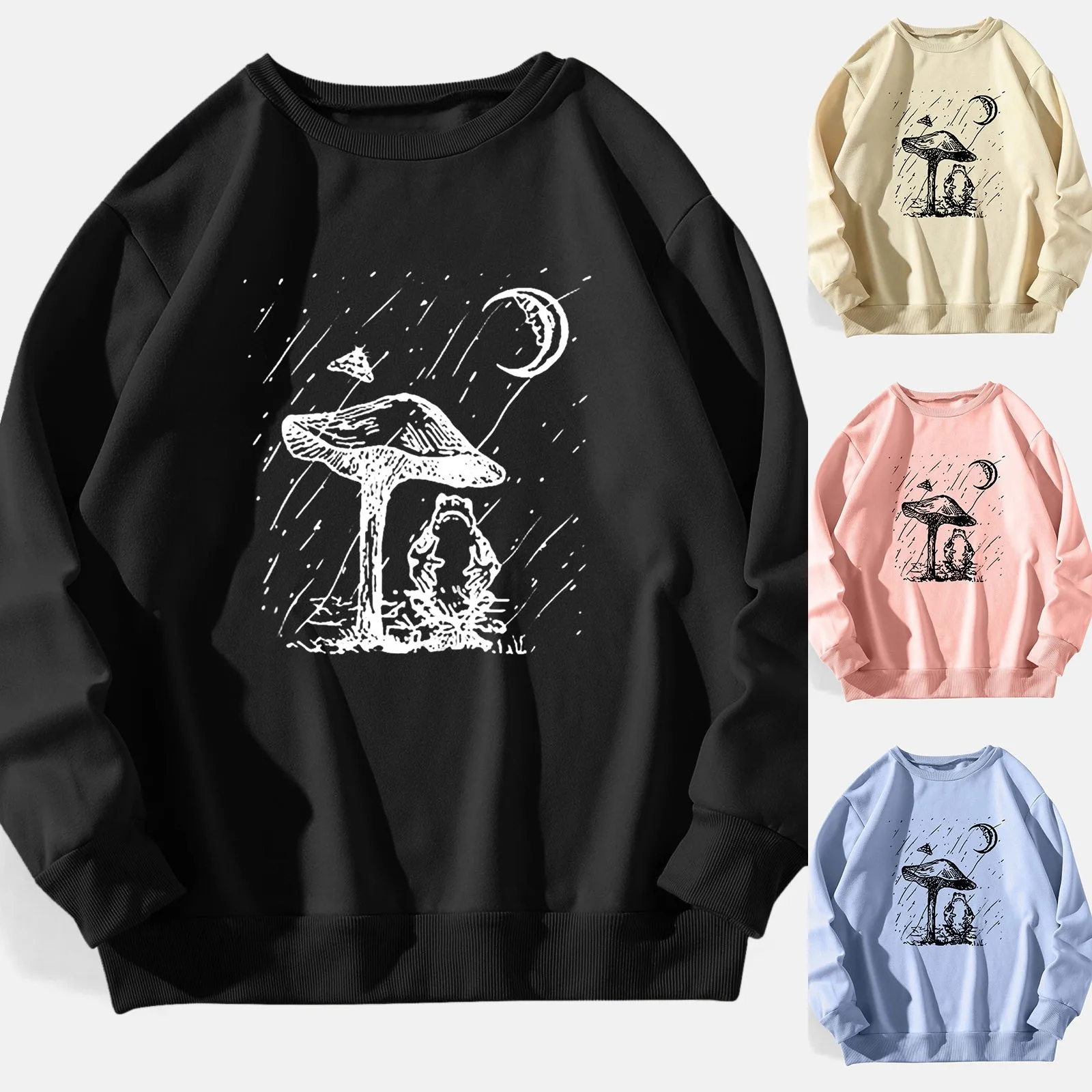 Harajuku Y2K Sun Moon Mushroom Print Long T-shirts Street Autumn Casual Streetwear Casual Round Neck Women Fashion Cartoon Tees