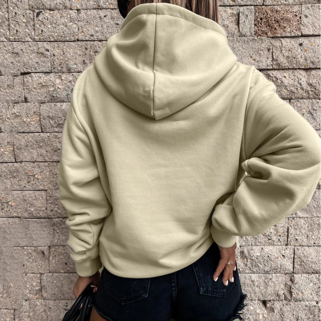 Women Sweatshirts Solid Color Long Sleeve Pocket Loose Hoodie Sweatshirt Casual Daily Autumn Female Hoodies Top Streetwear