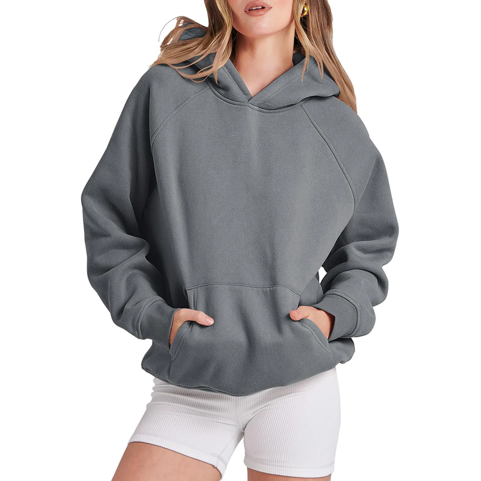 Women's Casual Tracksuit Basic Fashion Fleece Loose Hoodie Sweatshirt Long Sleeve Pocket Soft Warm Pullovers Top Lady Streetwear