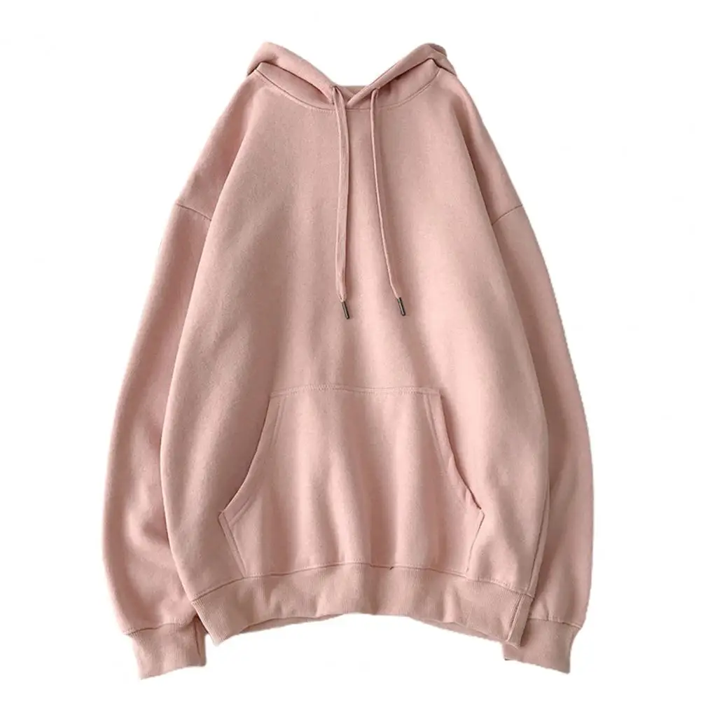 Solid Color Pockets Pullover Hoodie Long Sleeve Hooded Drawstring Couple Sweatshirt Streetwear Loose Fit Pullover Top Outwear