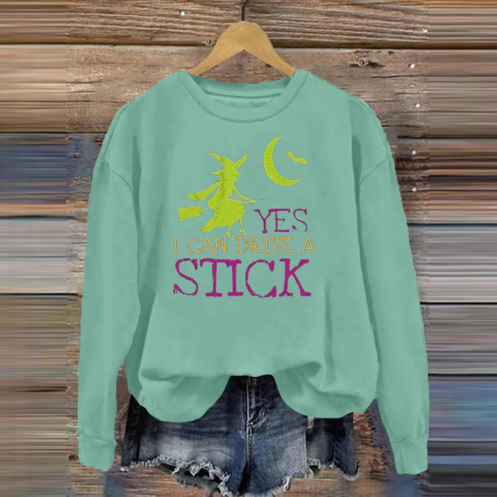 2024 New Women'S Halloween Witch Letter Printed Hoodie Round Neck Long Sleeve Casual Comfortable Pullover Fashion Beautiful Top