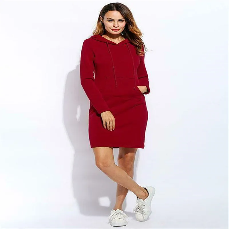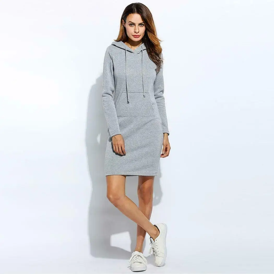 Fashion Women's Hooded Long Sleeve Fall Autumn Hoodie Casual Style with Pocket Bodycon Tunic Dress Top New Hot Sale