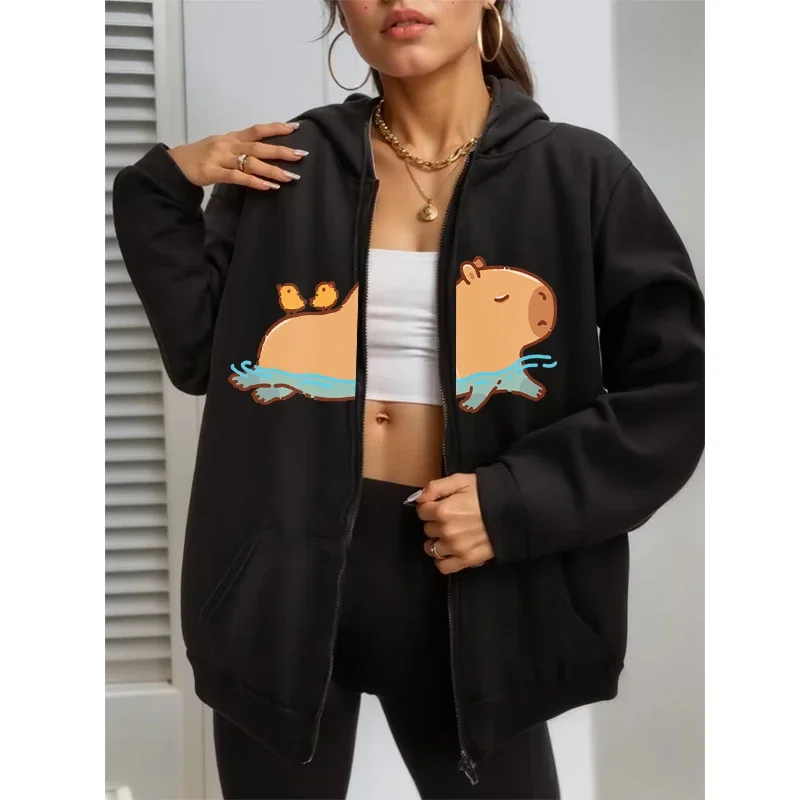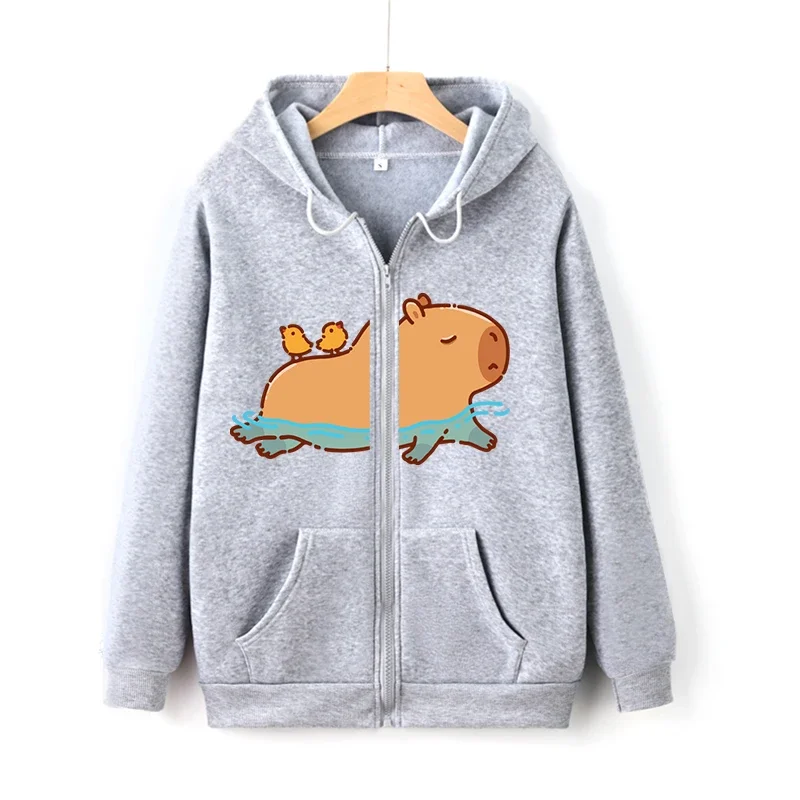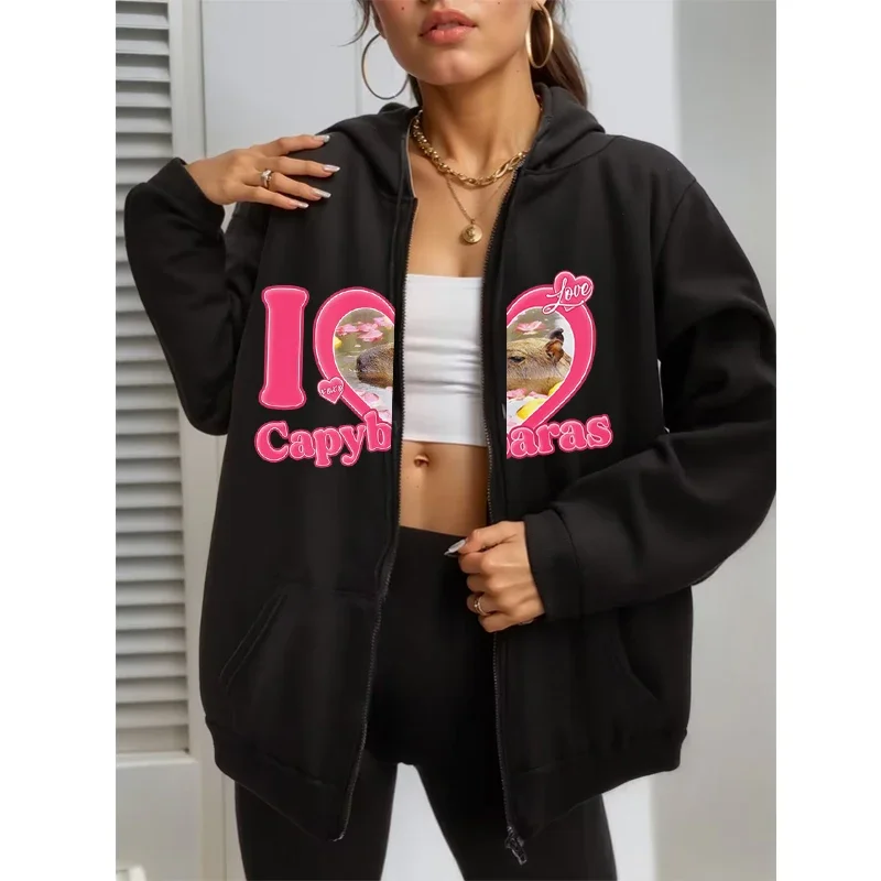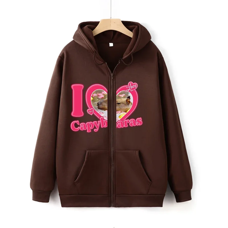 Funny I Love Capybaras Tops Long Sleeves Winter Women/Men Hoodies Brown Sweatshirt Pocket Drawstring Zipper Hoodie Streetwear
