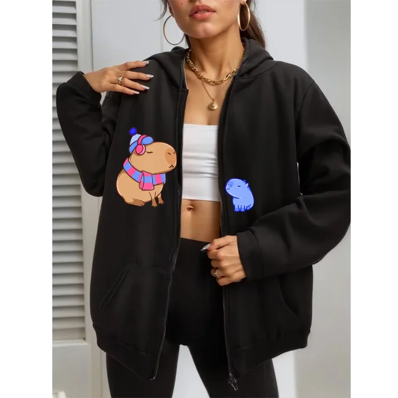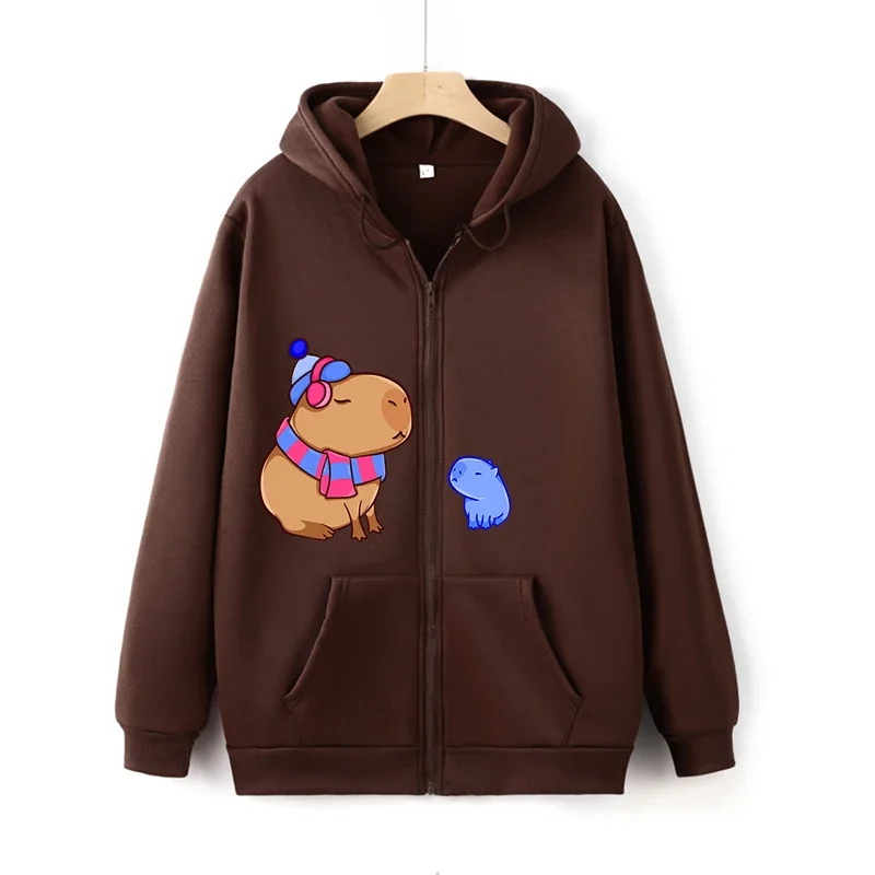 Name | Hot Cartoon Capybaras Printed Women/Men Zip up Hoodie Winter Casual Sweatshirt 2000s Girl Y2k Aesthetic Pullover Retro Harajuku |