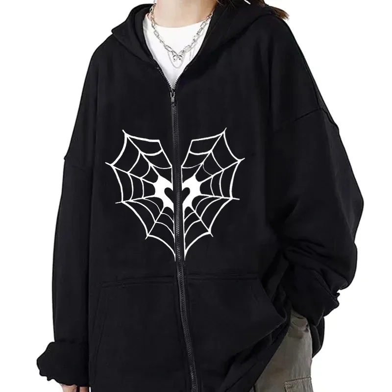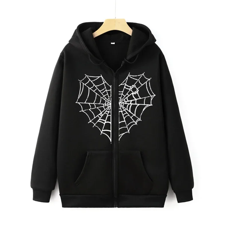 Casual Zipper Hoodie Spider Web Heart Graphic Women Men Hooded Sweatshirt Kpop Zip up Y2k Jacket Cardigan Aesthetic Streetwear