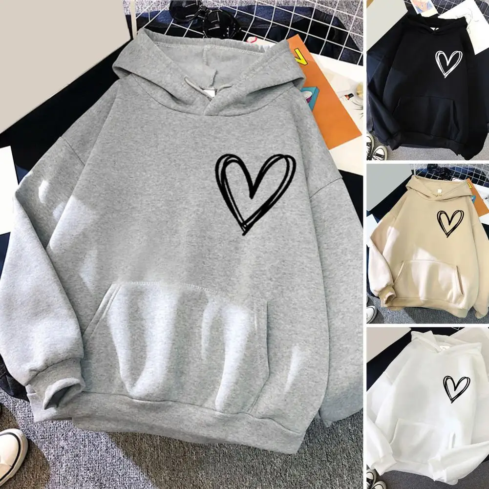 Name | Women Heart Print Hoodie Heart Print Pullover Sweatshirt Cozy Hooded Stand Collar with Long Sleeve Pocket Streetwear for Women |