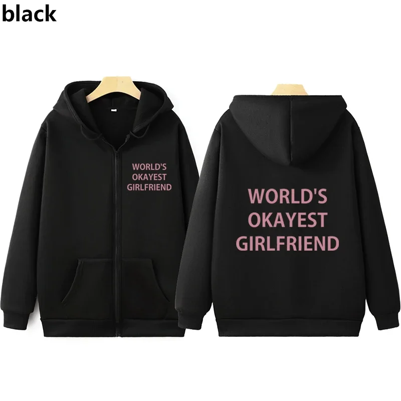 World's Okayest Girlfriend Graphic Hoodie Men Women Zipper Cardigan Y2k Jacket Funny Letter Print Sweatshirt Oversize Streetwear