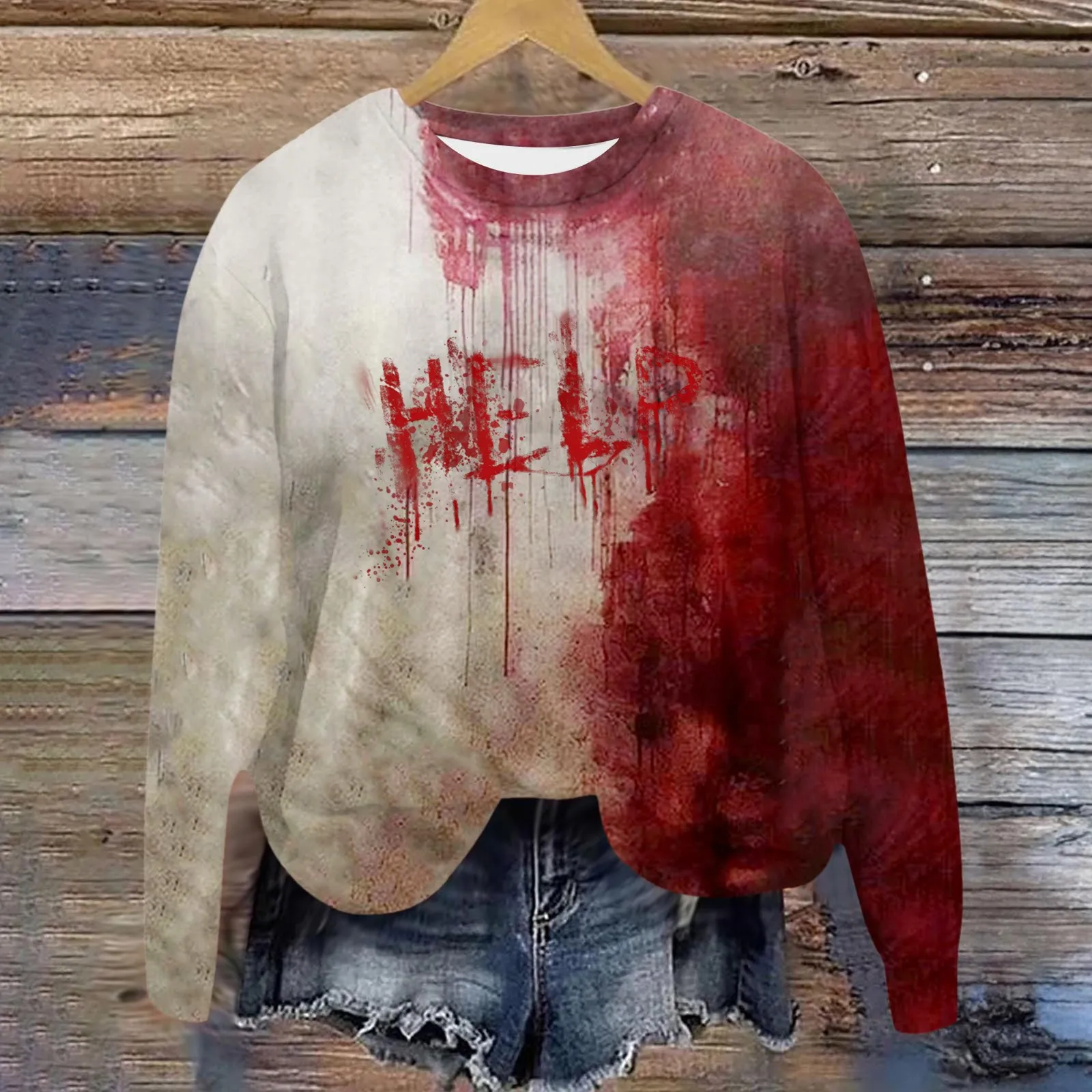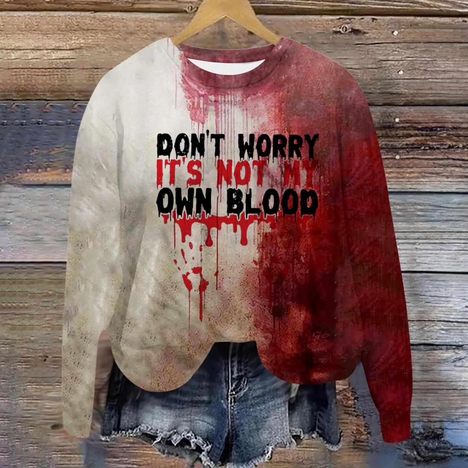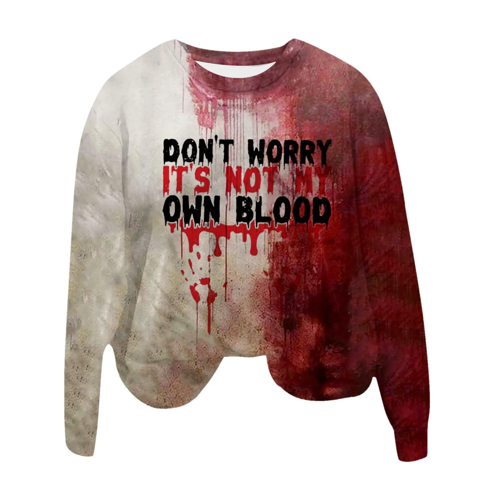 Women'S Halloween Trend Hoodie Crew Neck Long Sleeve Twill Thin Pullover Top I'M Fine IT'S NOT MY BLOOD Monogram Print Hoodie
