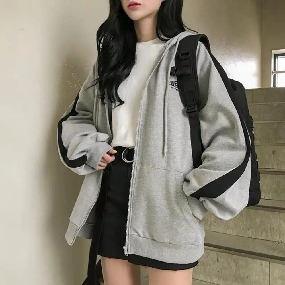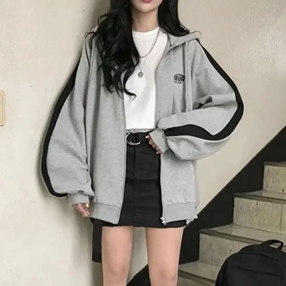 Women Hoodies Spring Coat Hooded Long Sleeves Zipper Cardigan Loose Keep Warm Contrast Color Soft Women Hoodie Coat Women