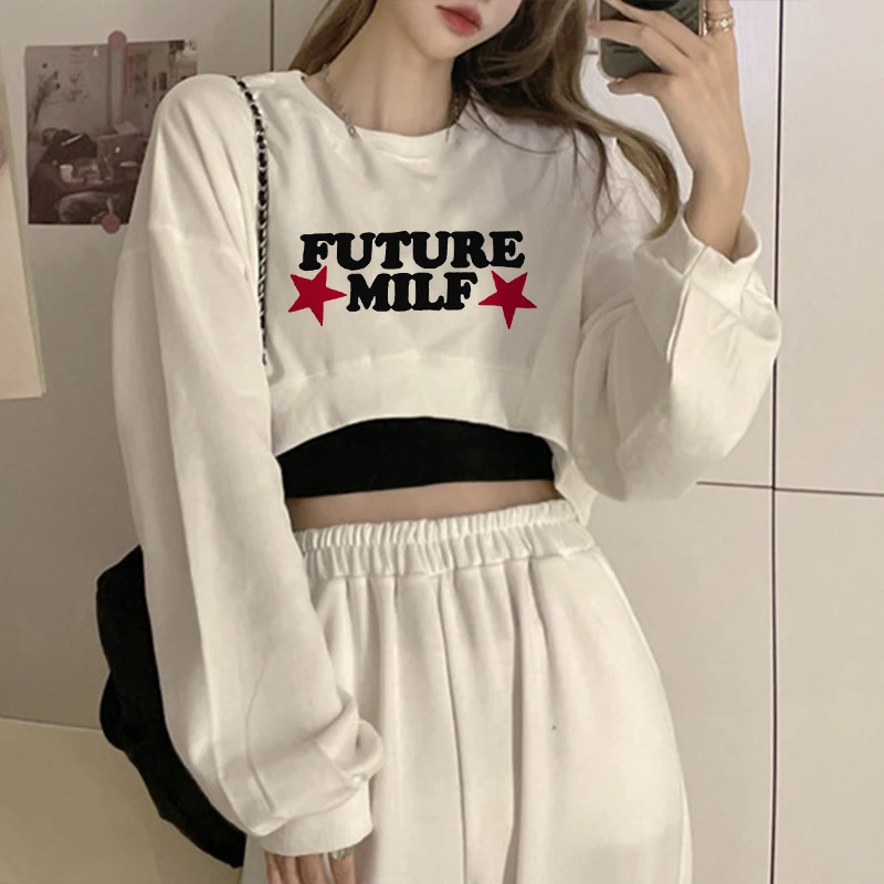 Future Milf Star Graphic Print Hoodie Women Vintage Sweatshirt Oversized Streetwear Fashion Casual Crop Top Hoodies Y2K Clothes