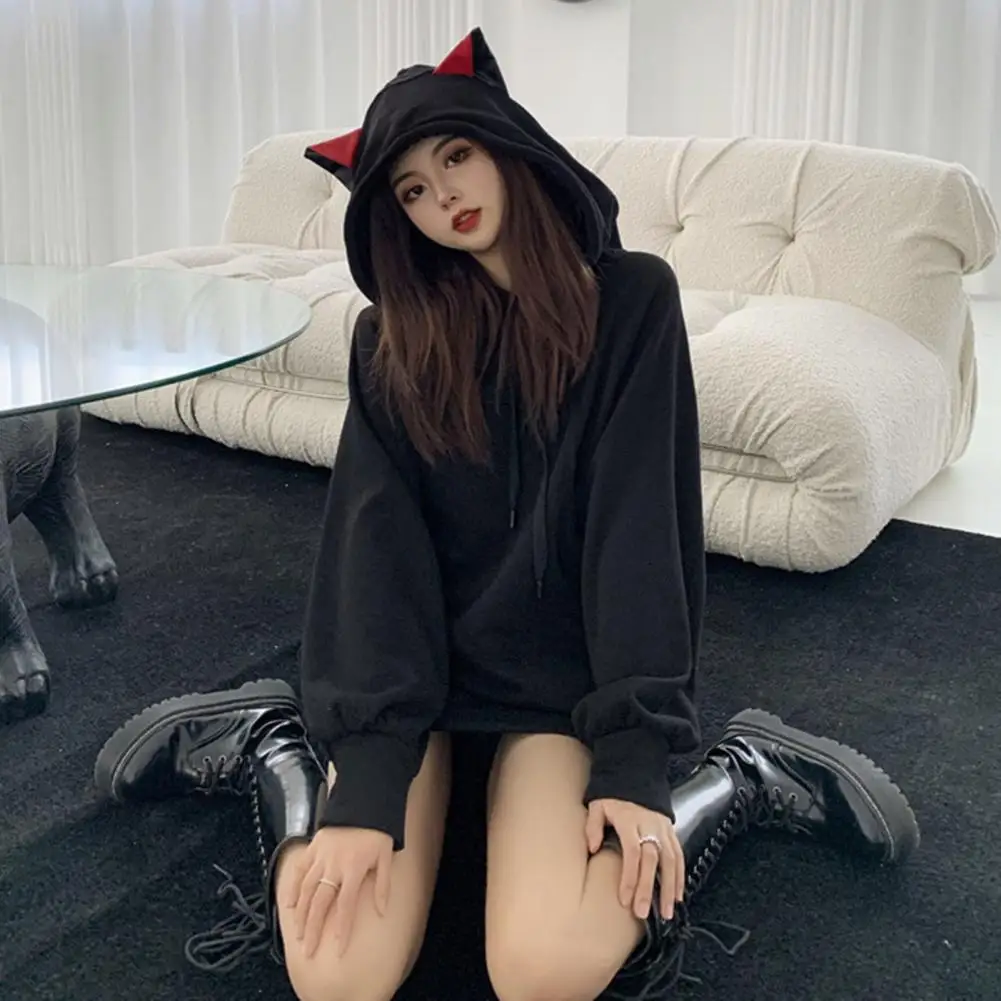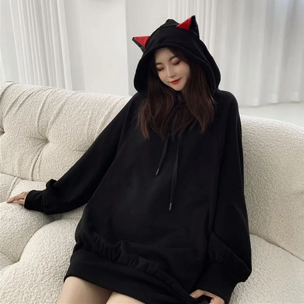 Name | Women Soft Hoodie Cozy Cat Ear Hoodie Stylish Women's Autumn Winter Pullover with Elastic Cuffs Mid-length Warmth Lady Winter |