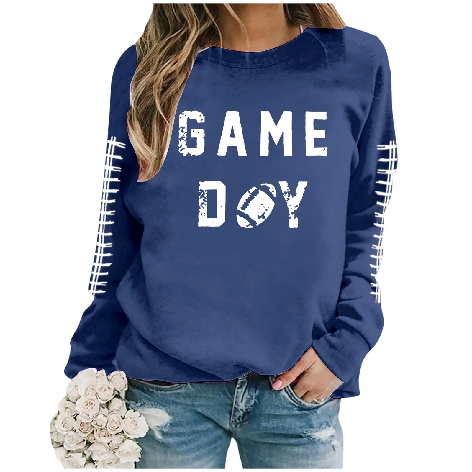 Women Sweatshirt Casual Crew Neck Sweatshirts Long Sleeve Rugby Football Graphic Print Pullover Oversized Tops Blouse Streetwear