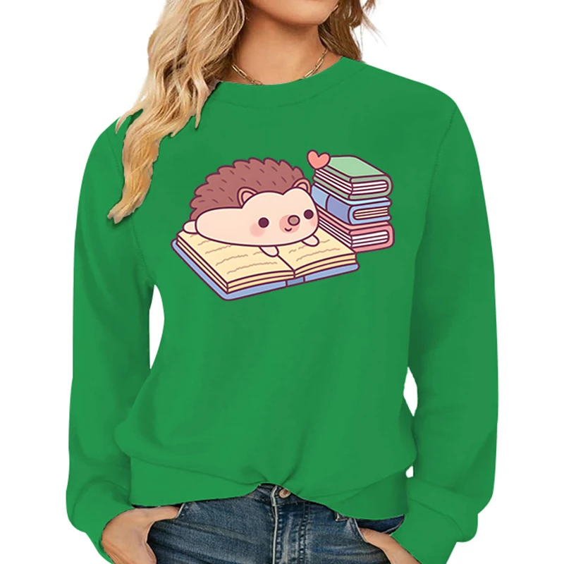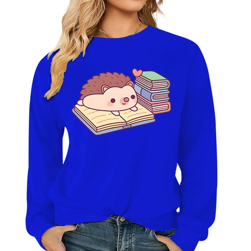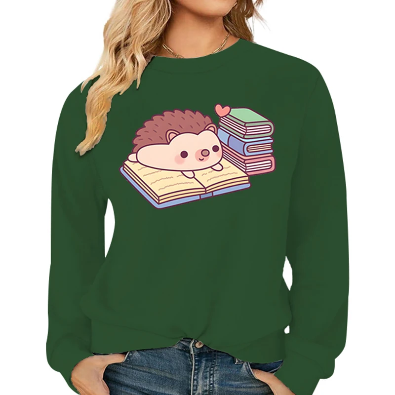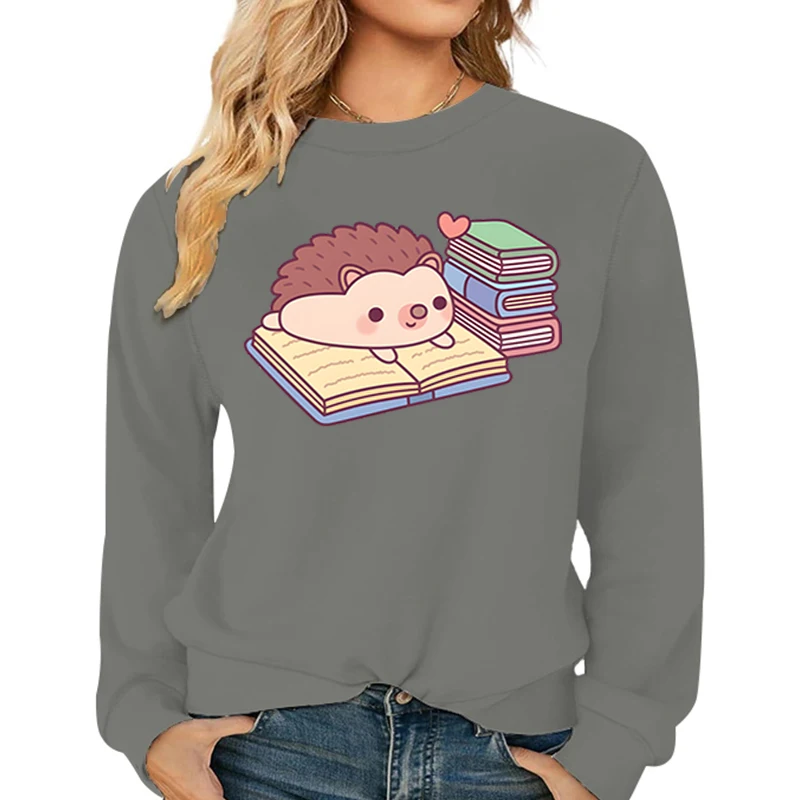 Name | Cute Hedgehog Reading Book Pattern Women's Hoodies Fashion Casual Cartoon Animal Hoody Loose Cotton Ladies Hedgehog Sweatshirts |