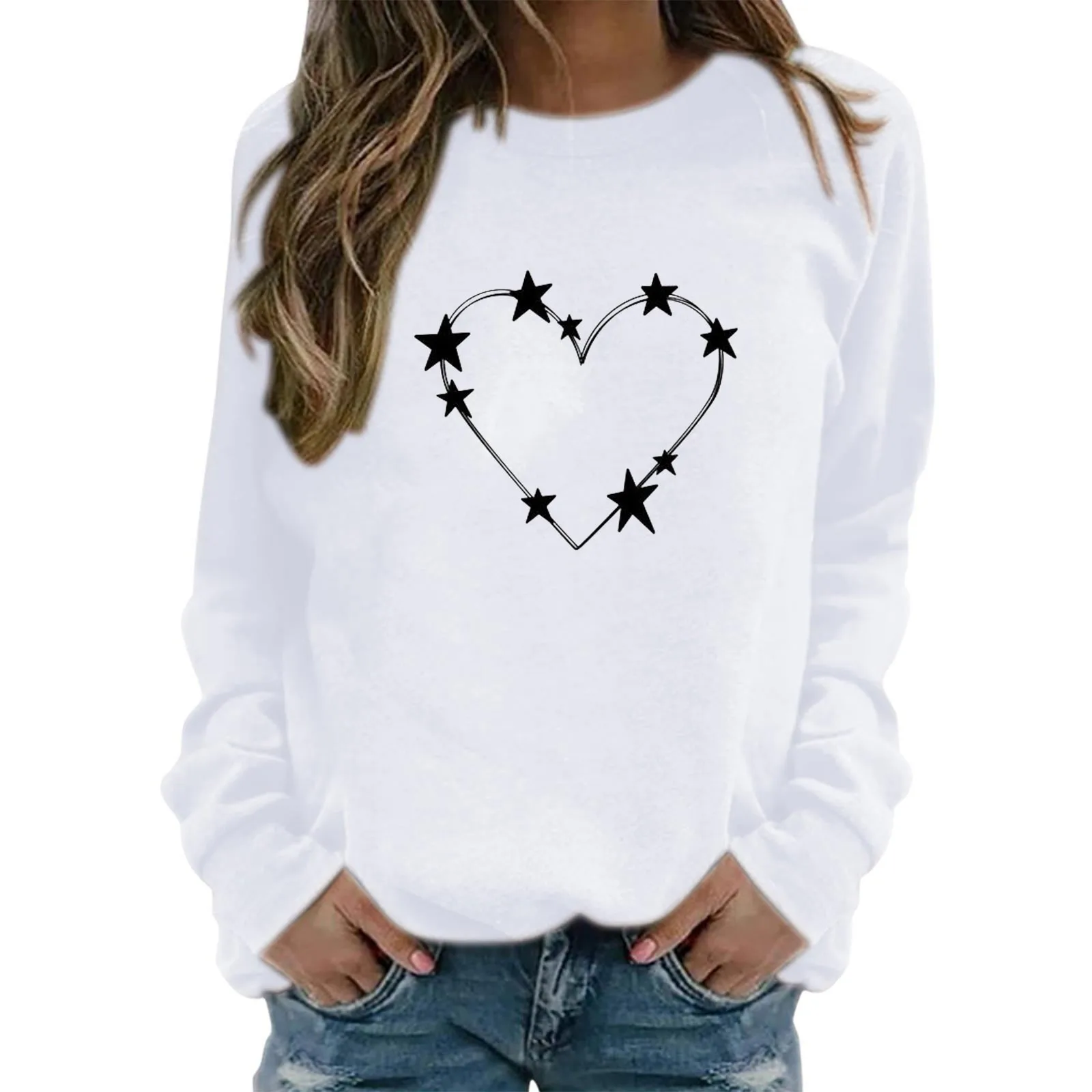 Womens Print Hoodies Sweatshirt Round Neck Fit Pullover Tops Casual Long Sleeve Workout Shirts Loose Cute Long Sleeve Hoodie