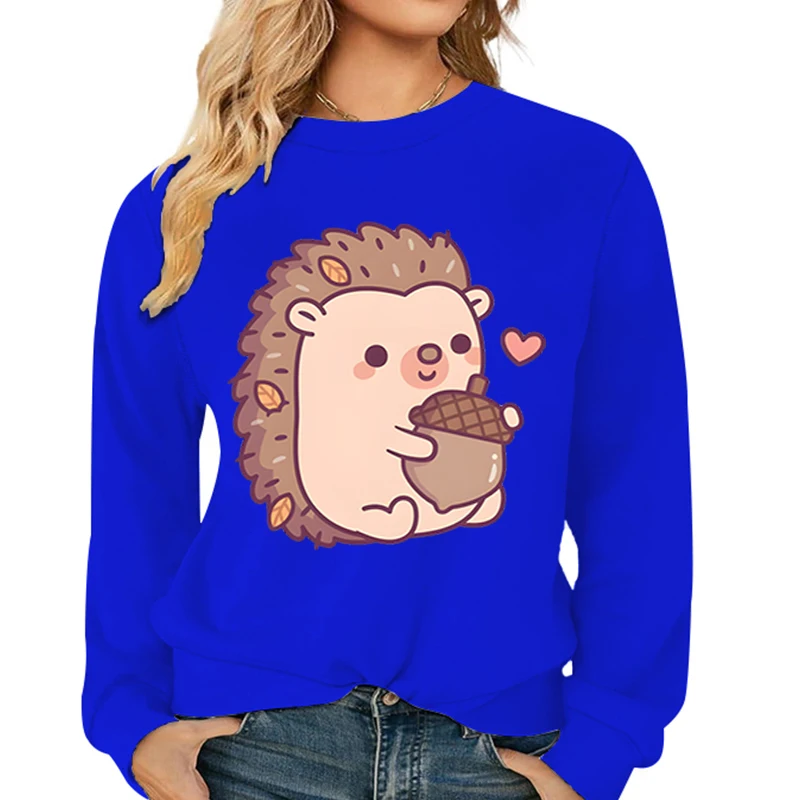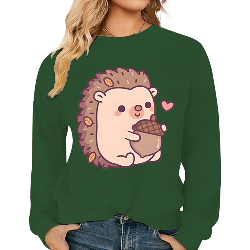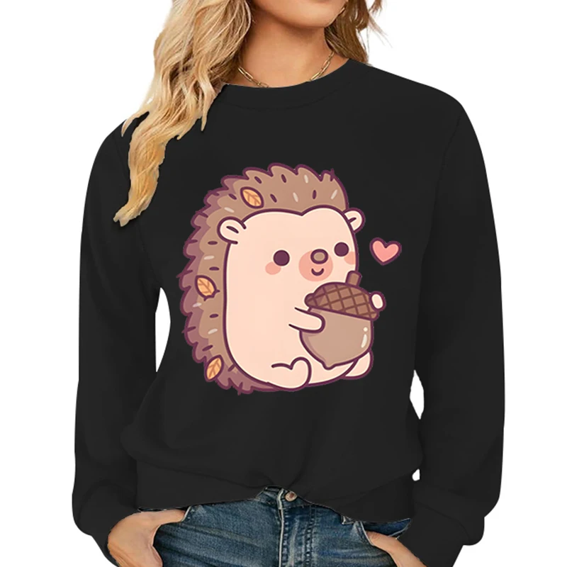 Name | Cute Hedgehog and Acorn Pattern Sweatshirts Women Long Sleeve Crewneck Autumn Tracksuit Cartoon Anime Hedgehog Female Pullover |