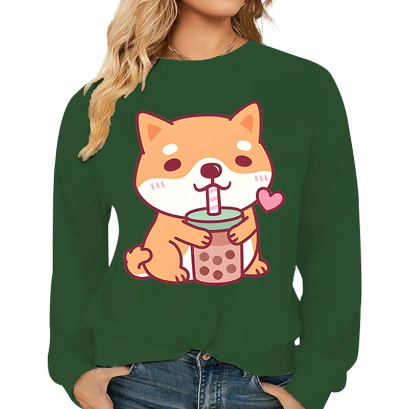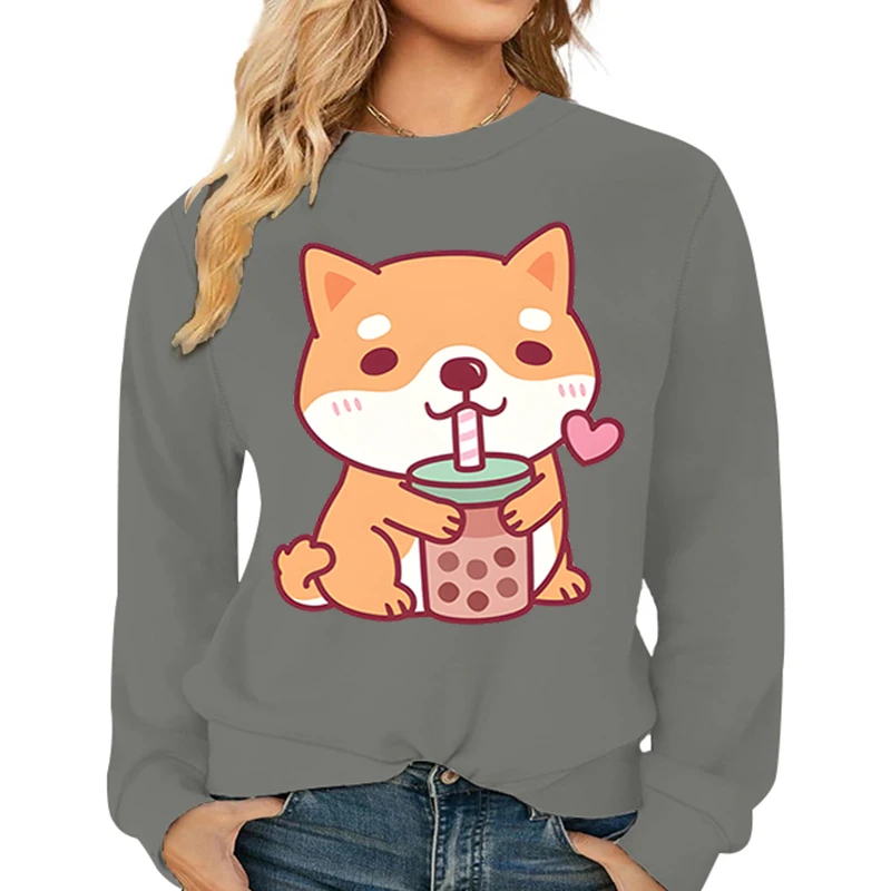 Name | Corgi Bobo Tea Hoodies Women Long Sleeve Autumn Winter Tracksuit Cartoon Animal Corgi Dog Pullover Funny Anime Female Sweatshirt |