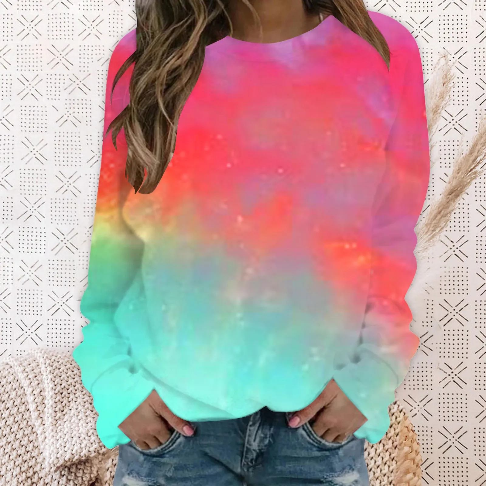 Name | 2024 Women Fashion Gradient Crewneck Sweatshirt Graphics Fall 2023 New Clothes Long Sleeve Casual Hoodie Pullovers Girls Blouse |